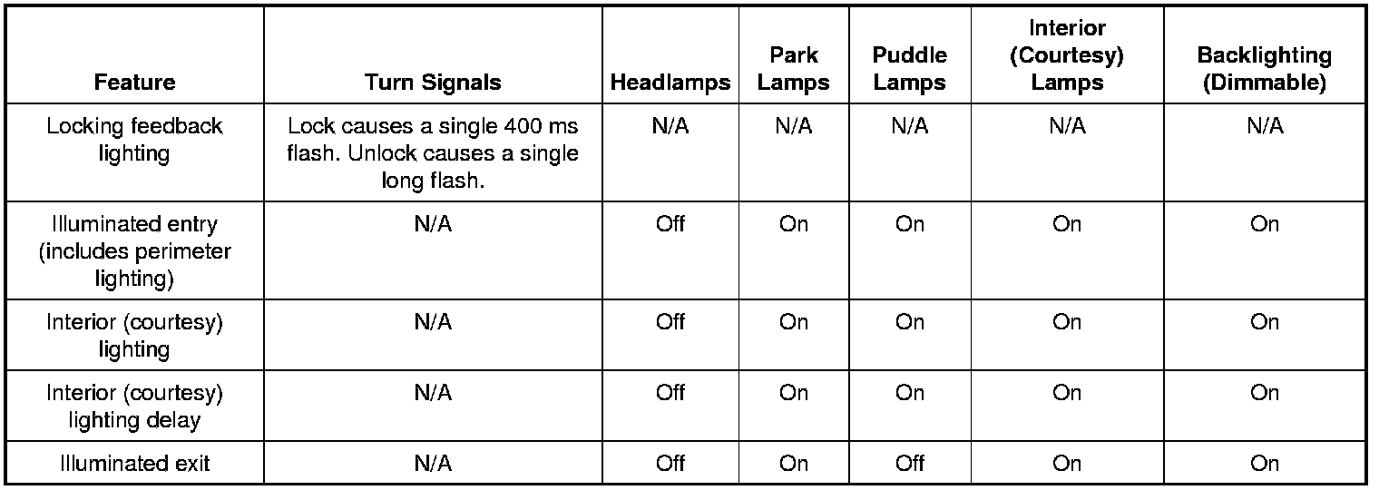 The welcome/farewell strategy is controlled by the SJB. Refer to the table for specific welcome/farewell strategy features.