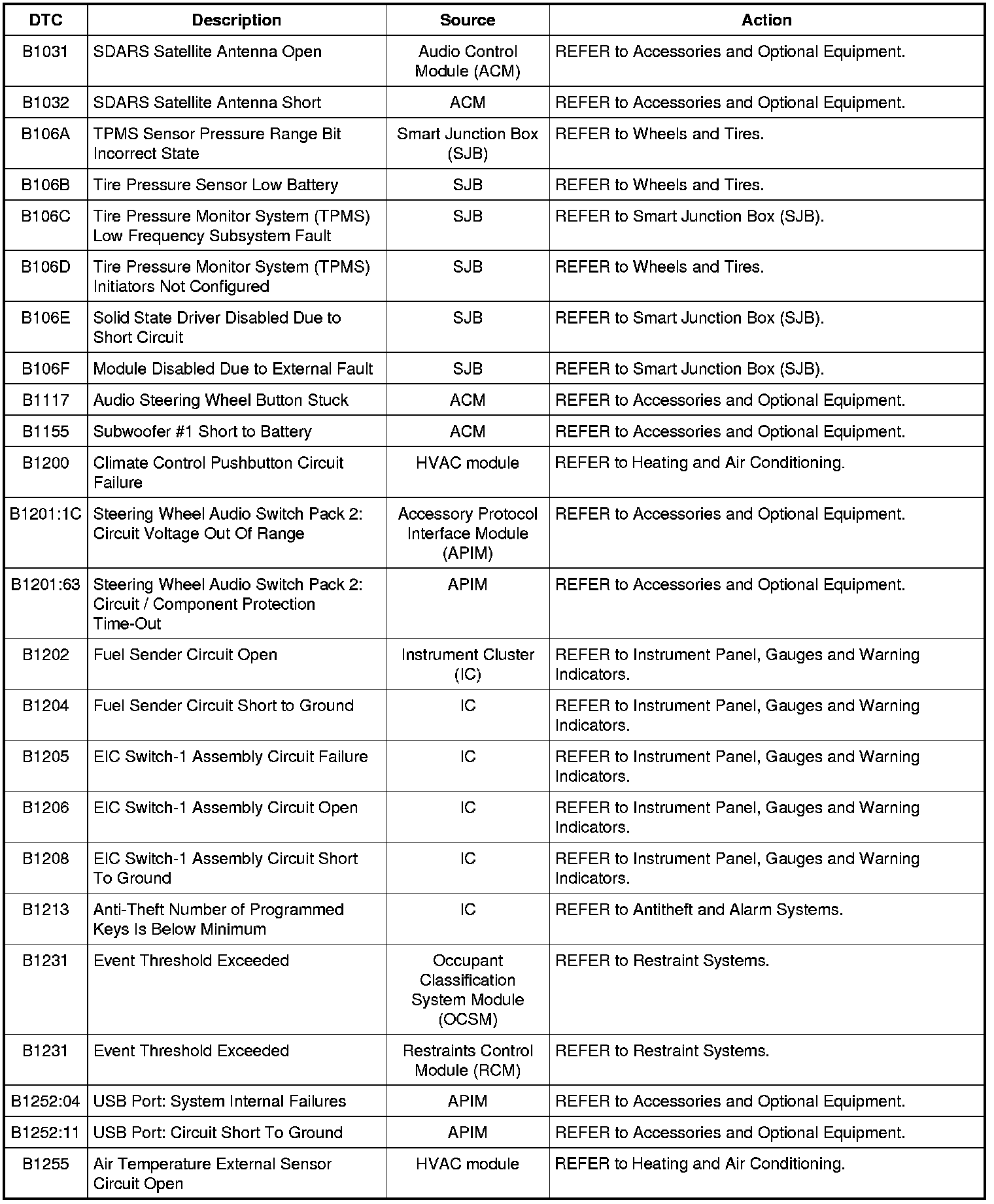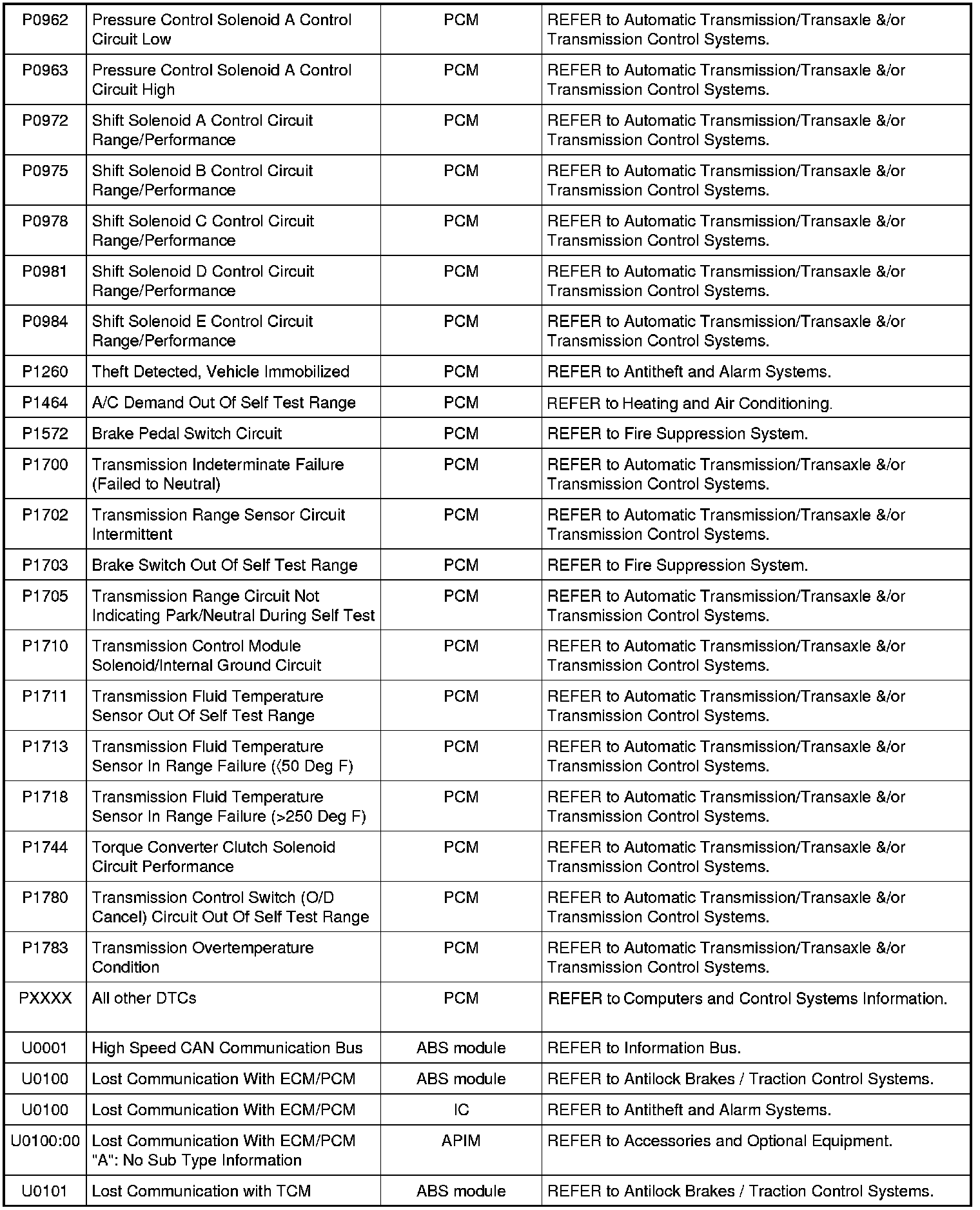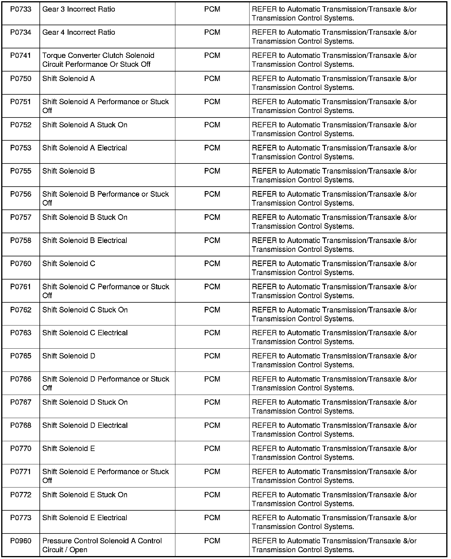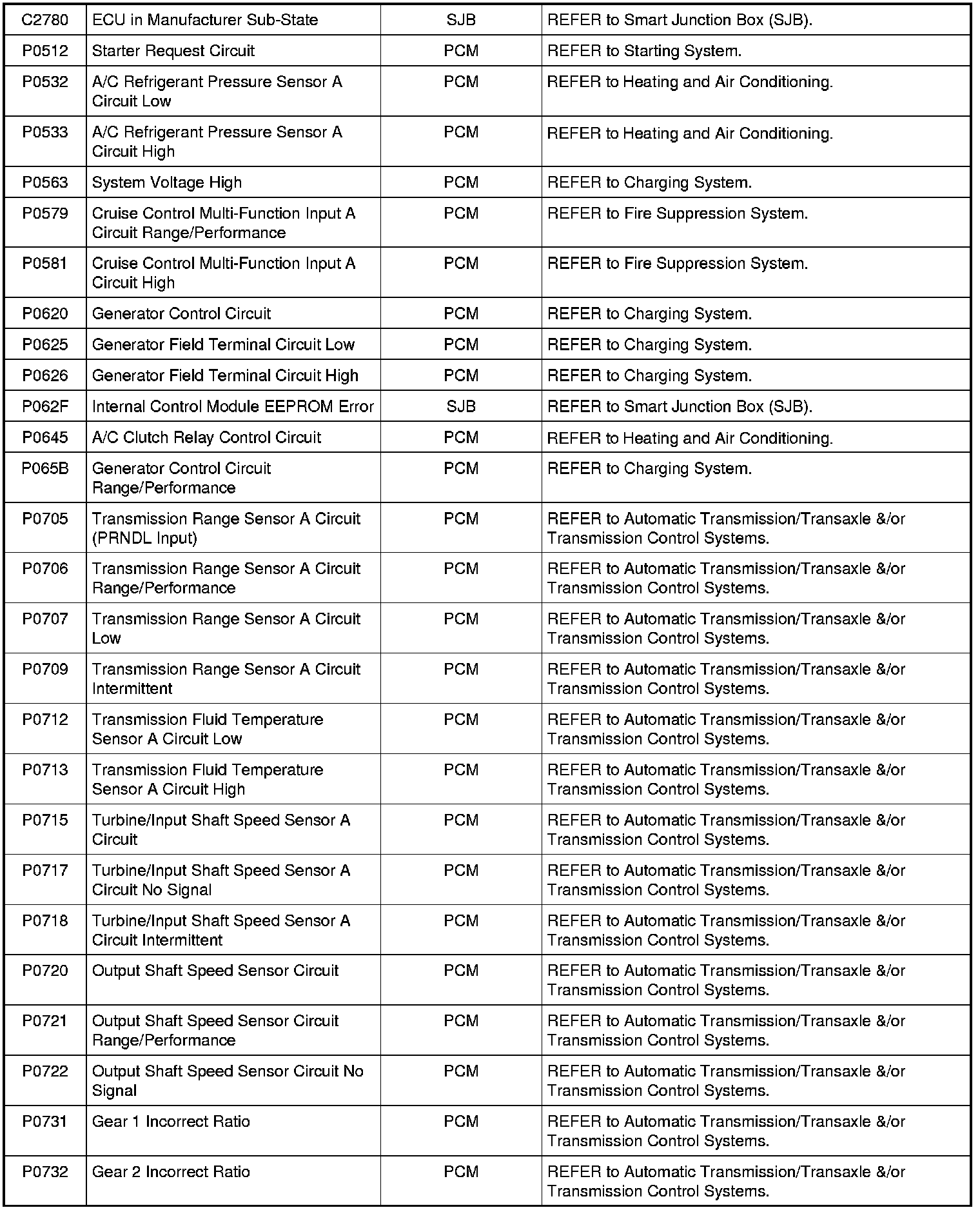 NOTE: Most powertrain (P-code) DTCs are diagnosed in Computers and Control Systems Information. If the P-code retrieved is not listed below, refer to Computers and Control Systems Information to continue diagnostics.