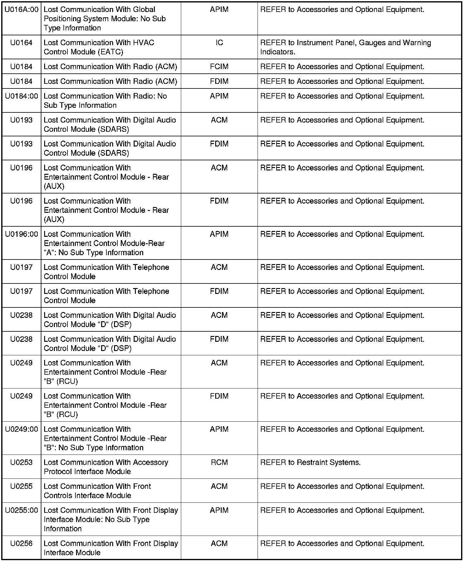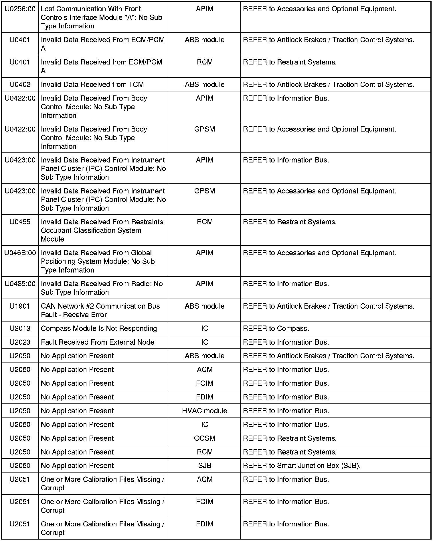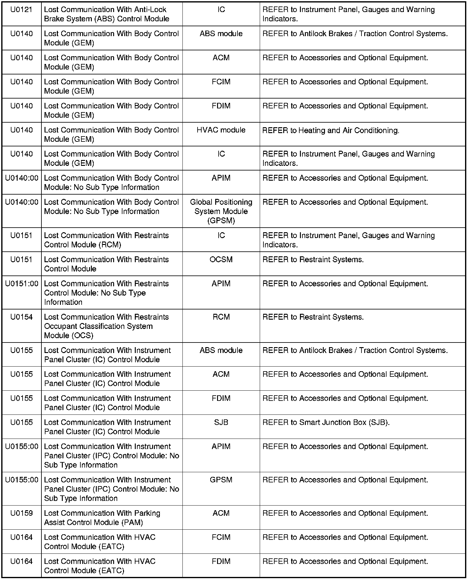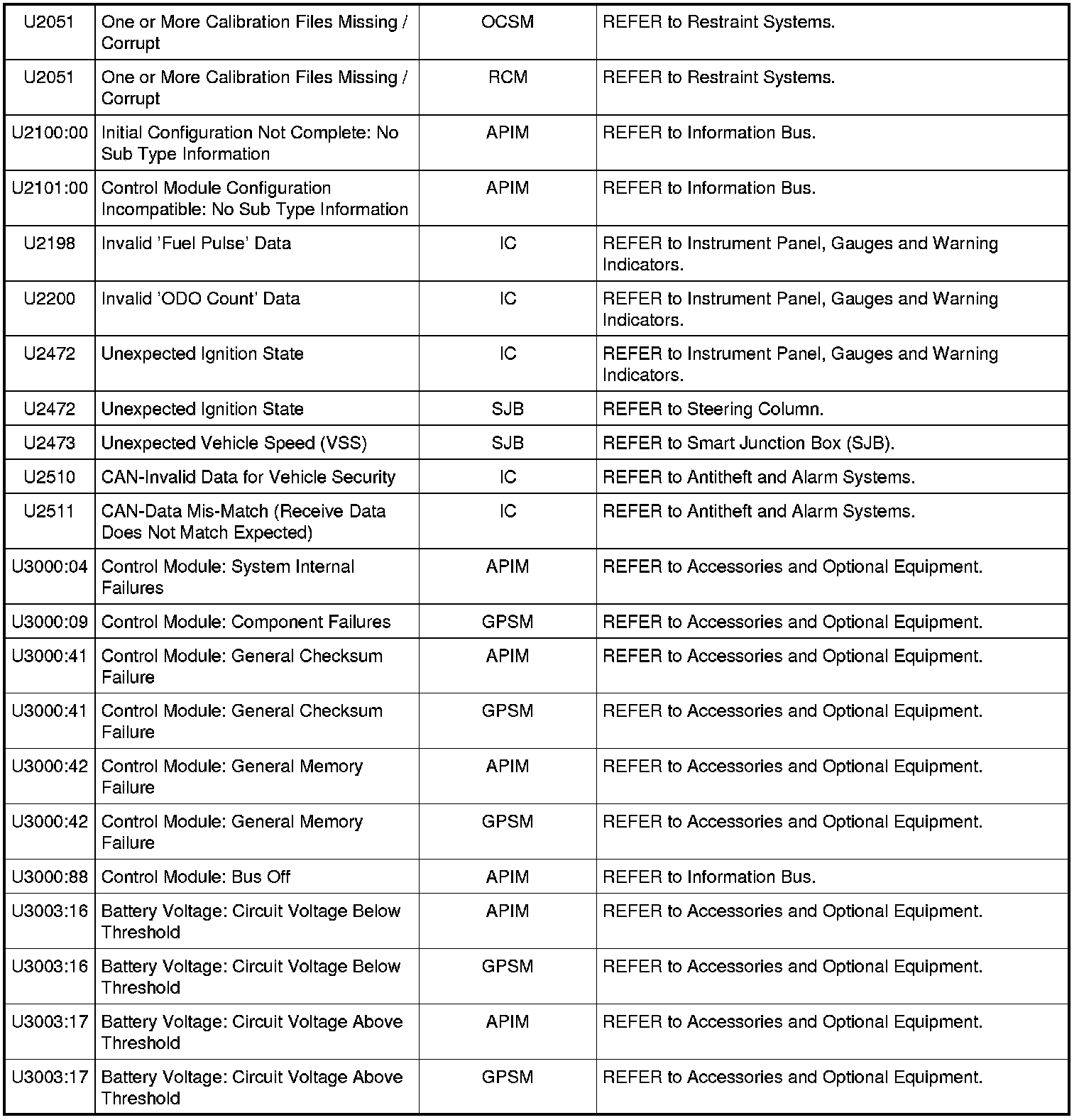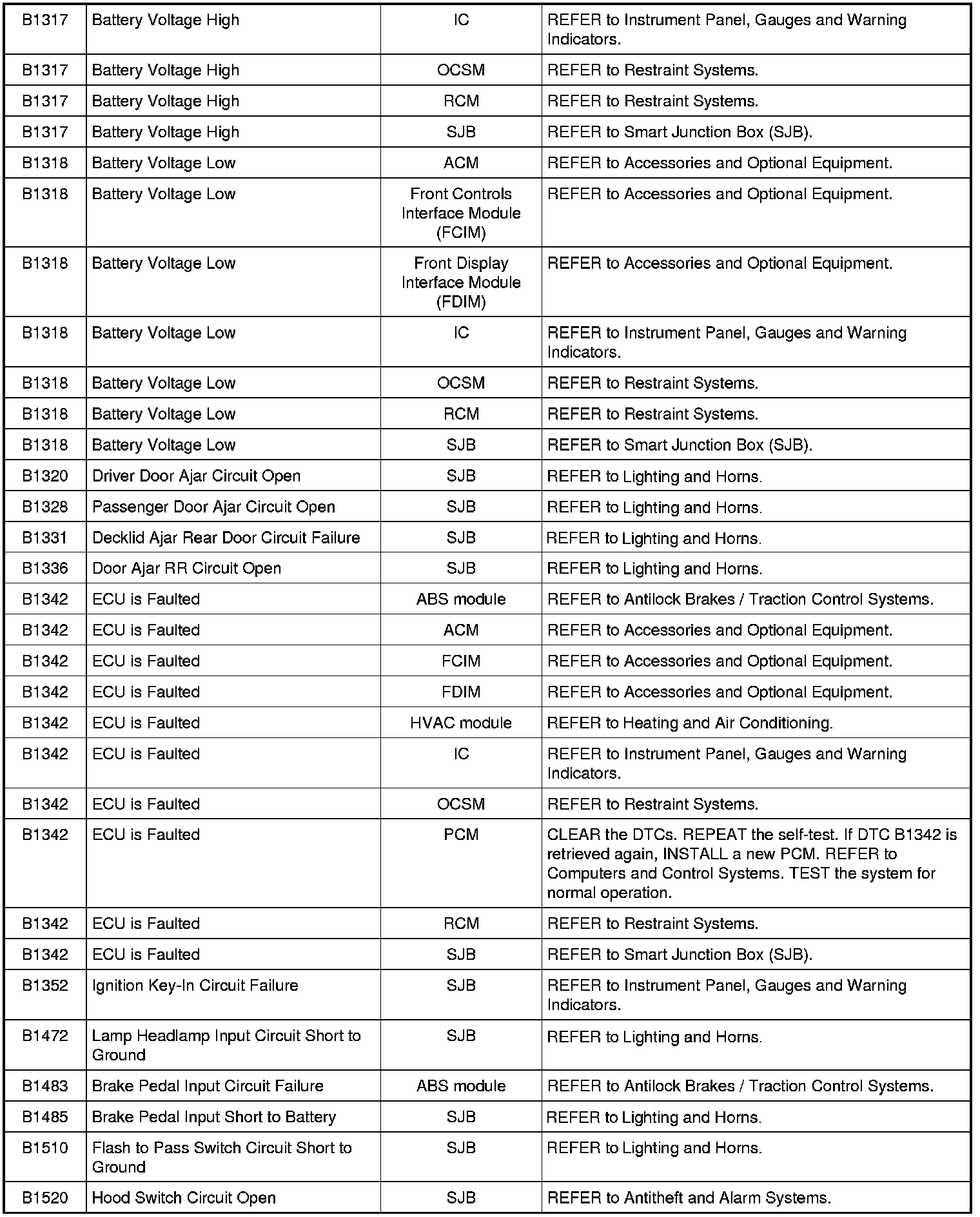 NOTE: Most powertrain (P-code) DTCs are diagnosed in Computers and Control Systems Information. If the P-code retrieved is not listed below, refer to Computers and Control Systems Information to continue diagnostics.