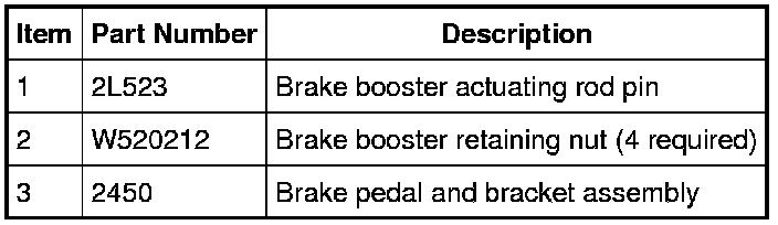 6. Remove the brake booster actuating rod from the brake pedal in the following sequence.