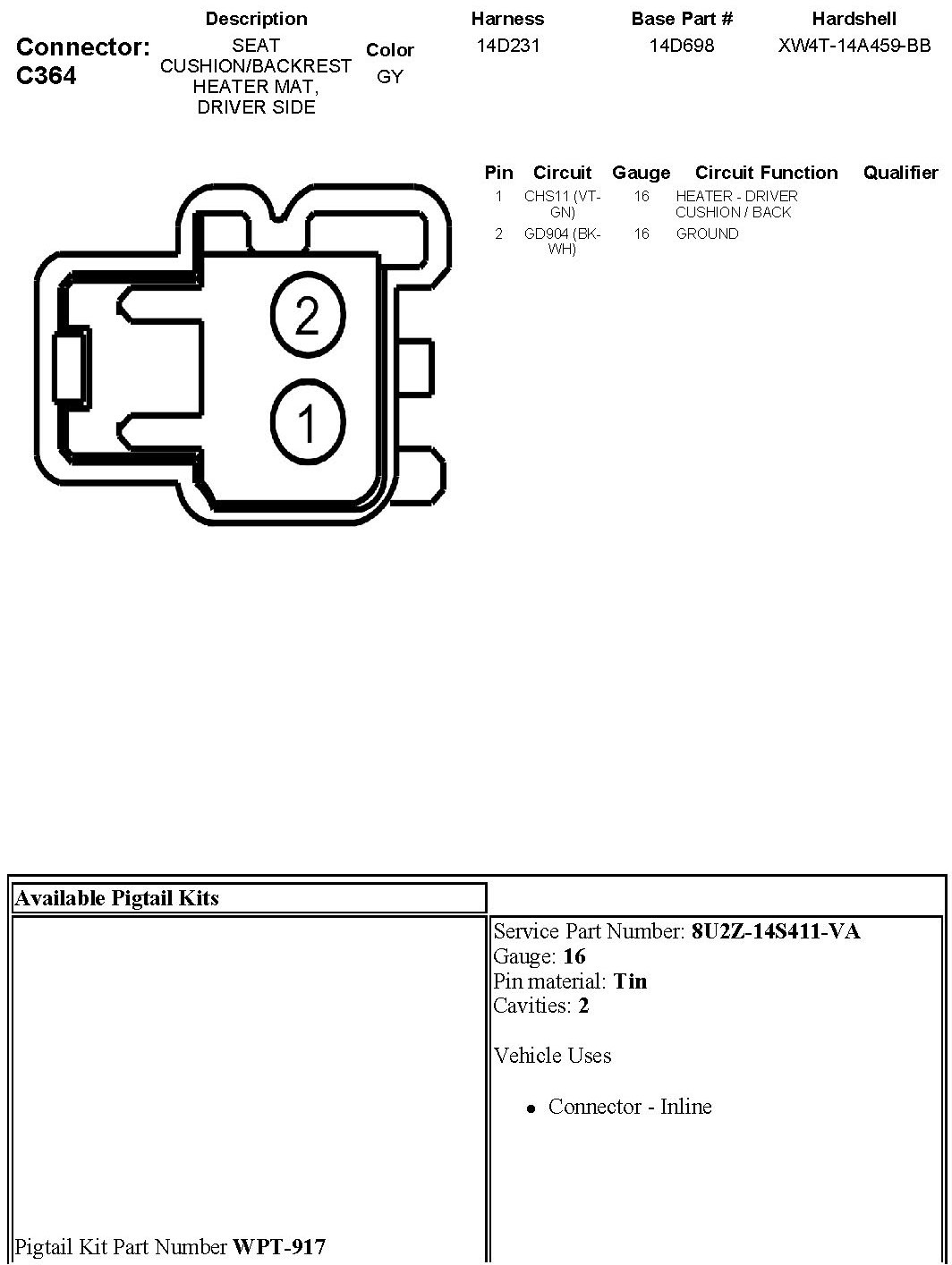 Seat Cushion/Backrest Heater MAT, Driver Side
