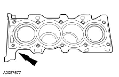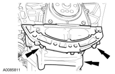 Apply a 2.5 mm (0.09 in) bead of silicone gasket and sealant to the oil pan-to-engine block and to the oil pan-to-engine front cover mating surface.