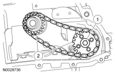 52. NOTE: Remove and discard the crankshaft sprocket diamond washer located behind the crankshaft sprocket.