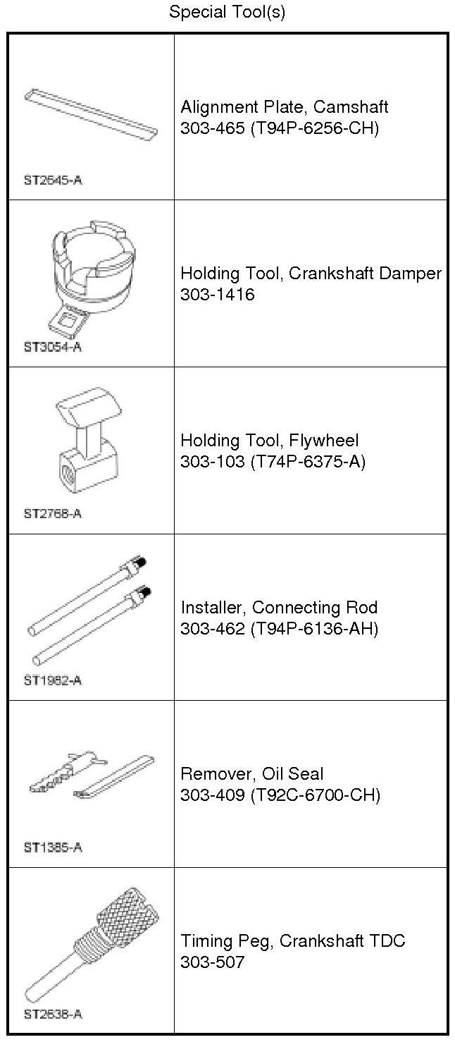 NOTICE: Do not loosen or remove the crankshaft pulley bolt without first installing the special tools as instructed in this procedure. The crankshaft pulley and the crankshaft timing sprocket are not keyed to the crankshaft. The crankshaft, the crankshaft sprocket and the pulley are fitted together by friction, using diamond washers between the flange faces on each part. For that reason, the crankshaft sprocket is also unfastened if the pulley bolt is loosened. Before any repair requiring loosening or removal of the crankshaft pulley bolt, the crankshaft and camshafts must be locked in place by the special service tools, otherwise severe engine damage can occur.