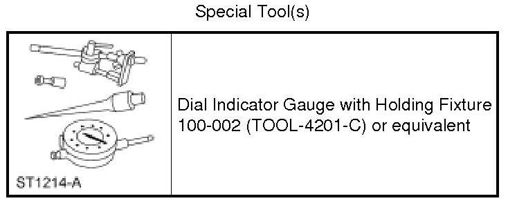 Using the Dial Indicator Gauge with Holding Fixture, measure the camshaft runout.