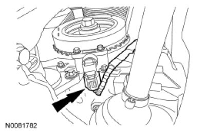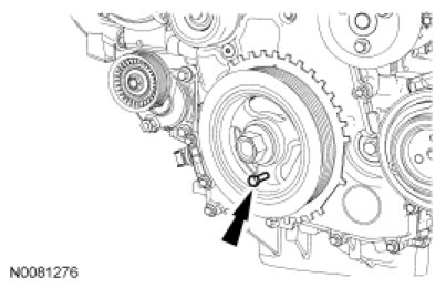 4. Remove the crankshaft pulley. For additional information, refer to Crankshaft Pulley Crankshaft Pulley.