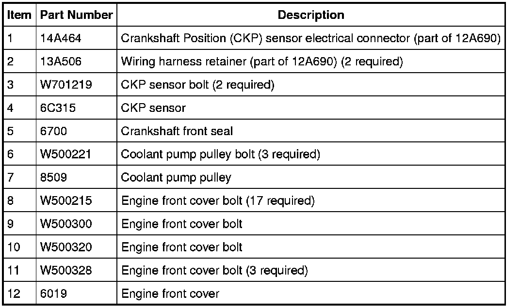 2. NOTE: The engine front cover must be installed and the bolts tightened within 4 minutes of applying the silicone gasket and sealant.