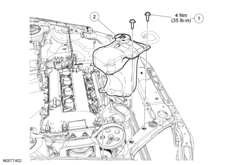 2. Remove the 2 bolts and position aside the coolant expansion tank.