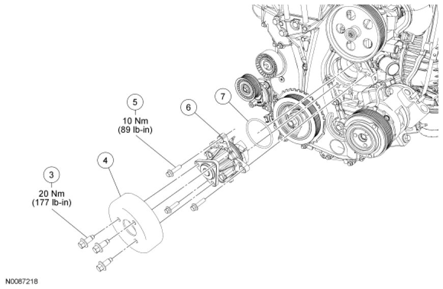 8. NOTE: Install a new coolant pump O-ring seal and lubricate with clean engine coolant.