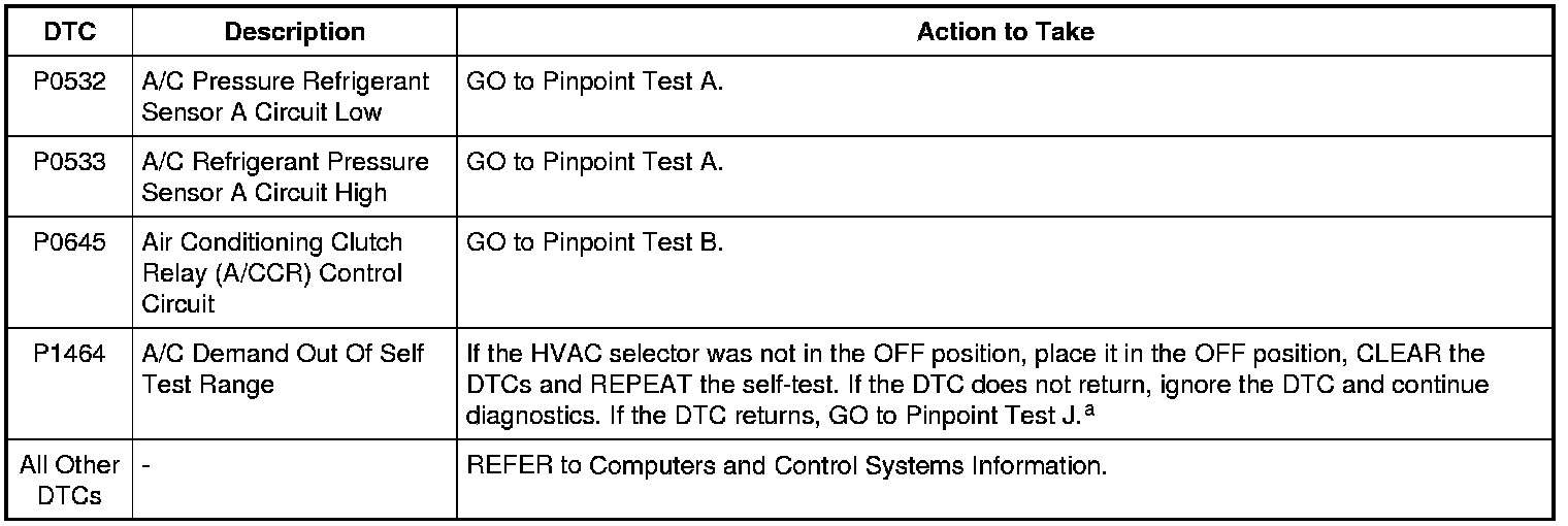PCM DTC P1464 will set if the function selector is in PANEL with A/C button pressed, DEFROST or MAX A/C mode when the on-demand self test is being run.