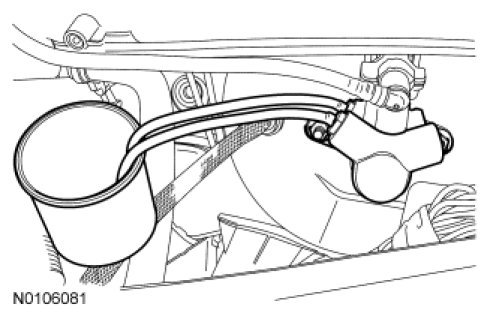 NOTICE: Do not spill brake fluid on painted or plastic surfaces or damage to the surface may occur. If brake fluid is spilled onto a painted or plastic surface, immediately wash the surface with water.