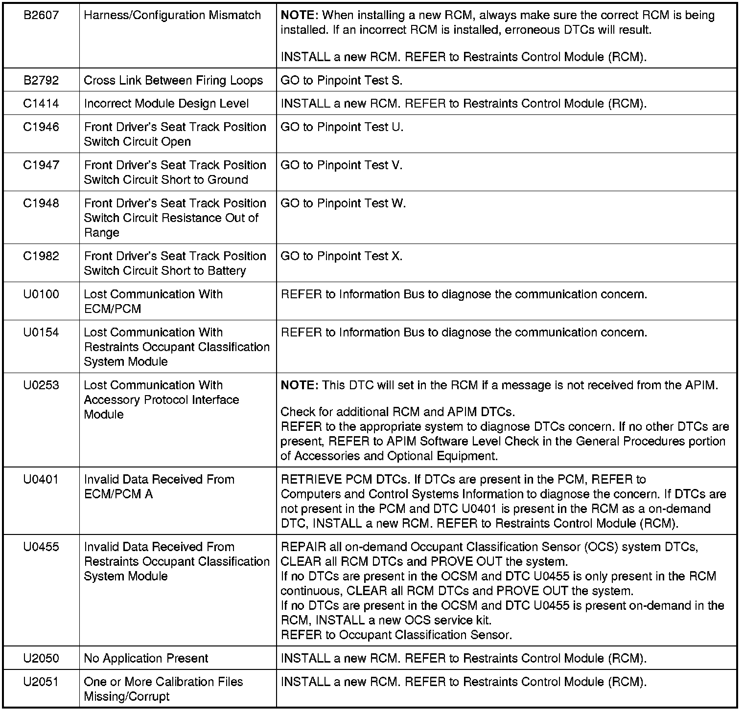 DTCs can be retrieved from the RCM and the OCSM with a scan tool via the DLC.