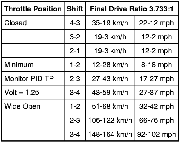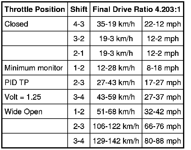 Shift Speeds Chart