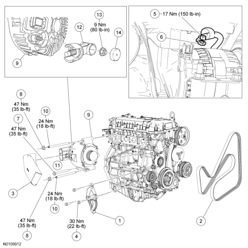 - Tighten to 47 Nm (35 lb-ft).