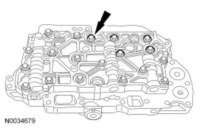 3. Remove the 4 bolts, remove the hold down bracket and remove Shift Solenoid A (SSA), Shift Solenoid B (SSB) and the Line Pressure Control (LPC) solenoid. Remove the 3 bolts and Shift Solenoid C (SSC),Shift Solenoid D (SSD) and Shift Solenoid E (SSE).