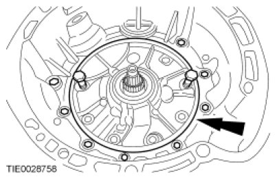 47. NOTICE: The intermediate/Overdrive (O/D) band servo cover plate is spring loaded. The bolts should be removed evenly until plate is unloaded, then remove the bolts. Failure to do so can result in bolt thread damage.