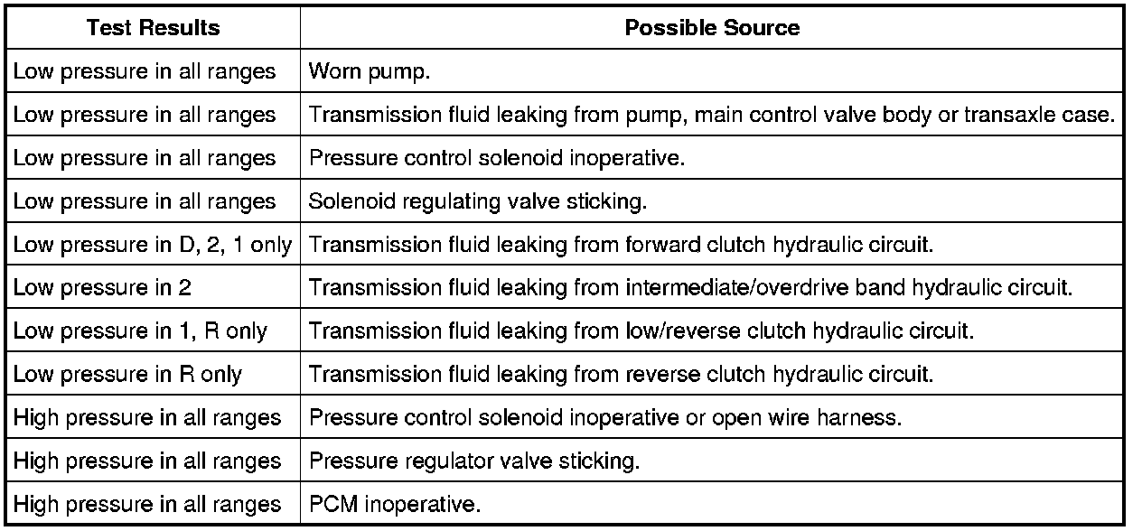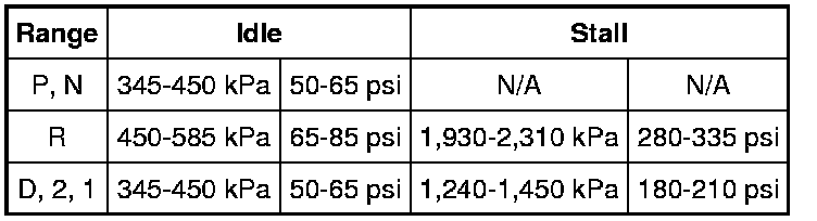 4. Start engine and check line pressures. Refer to the following Line Pressure Chart to determine if line pressure is within specification.