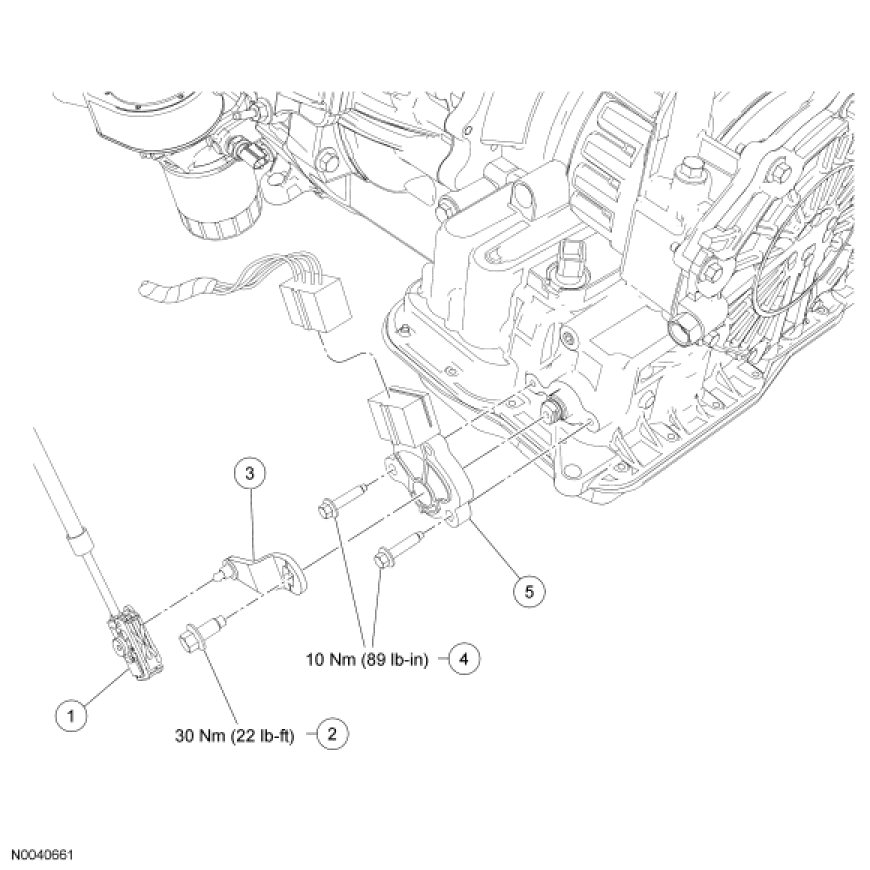 1. NOTE: Failure to hold the manual control lever while loosening or tightening the manual control lever bolt will transmit rotational torque to the TR sensor and shift mechanism.
