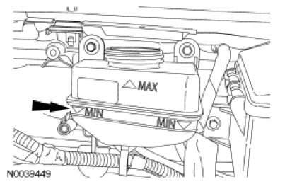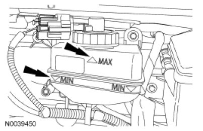 NOTICE: Do not spill brake fluid on painted or plastic surfaces or damage to the surface may occur. If brake fluid is spilled onto a painted or plastic surface, immediately wash the surface with water.