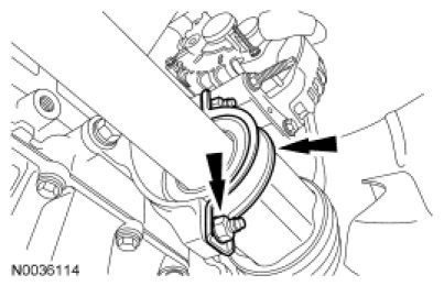 15. Position the bracket to the transaxle. Install the lower Heated Oxygen Sensor (HO2S) sensor bracket nut.