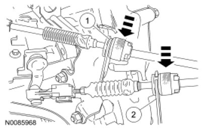 36. Adjust the gearshift cables. For additional information, refer to Manual Transmission/Transaxle &/or Clutch, M/T.