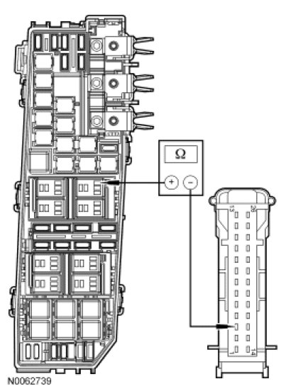 - Measure the resistance between HVAC module C2357A-3, circuit CH122 (WH/OG), harness side and rear window defrost relay socket pin 2, circuit CH122 (WH/OG).