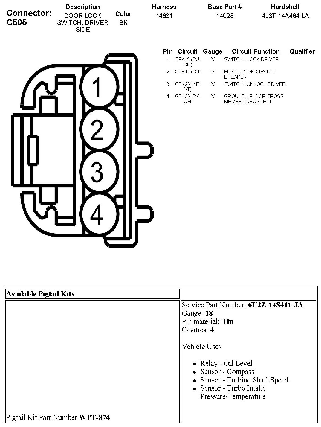 Door Lock Switch, Driver Side