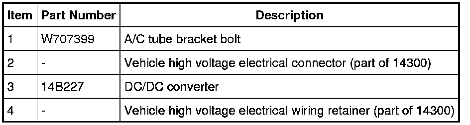 11. Disconnect the vehicle high voltage electrical connector from the DC/DC converter and detach the wiring retainer.