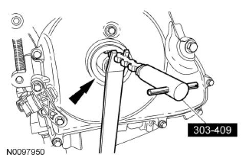 Using the Camshaft Front Oil Seal Installer, install the crankshaft front seal.