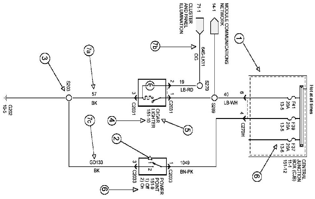 Ford Motor Company uses three different circuit numbering conventions: Standard Circuit Numbering System, Global Circuit Numbering System, and New Global Circuit Numbering System (NGCNS). With each, the circuit number (which identifies a specific circuit function) is followed by the wire color.