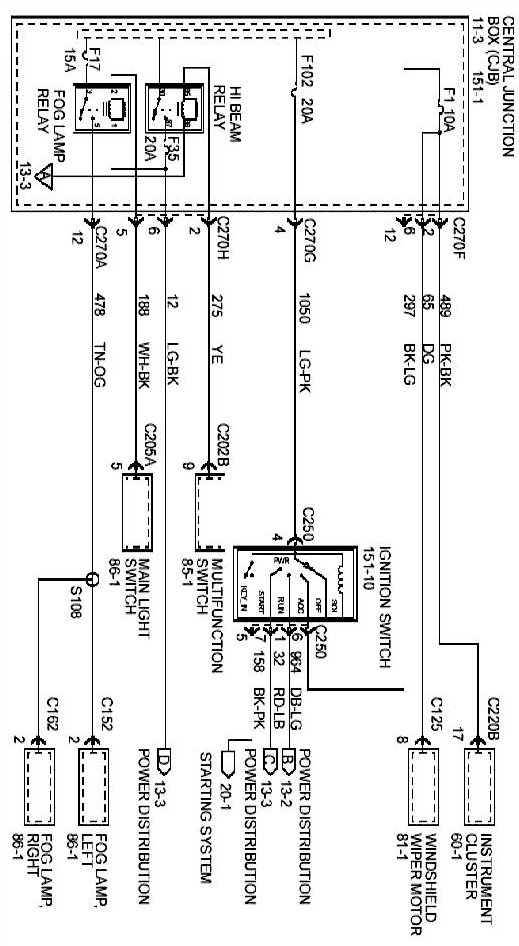 Each set normally starts with the component that powers the circuit, such as a fuse or the ignition switch. Current flow is shown from the power source at the top of the diagram to ground at the bottom of the diagram. A full representation of the power supply of a fuse or the power distribution from a fuse to various components is given in the Power and Ground Distribution Diagrams. Full representation of the ground connections are shown in the Power and Ground Distribution Diagrams.