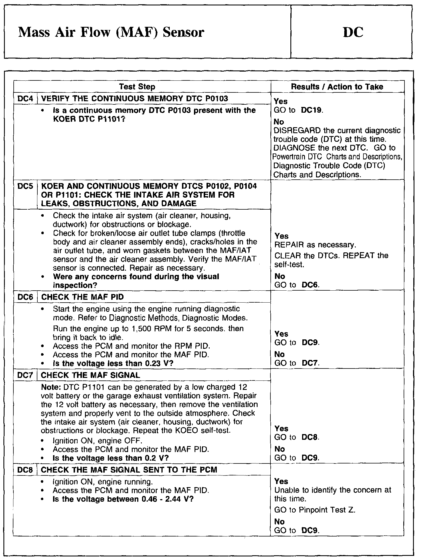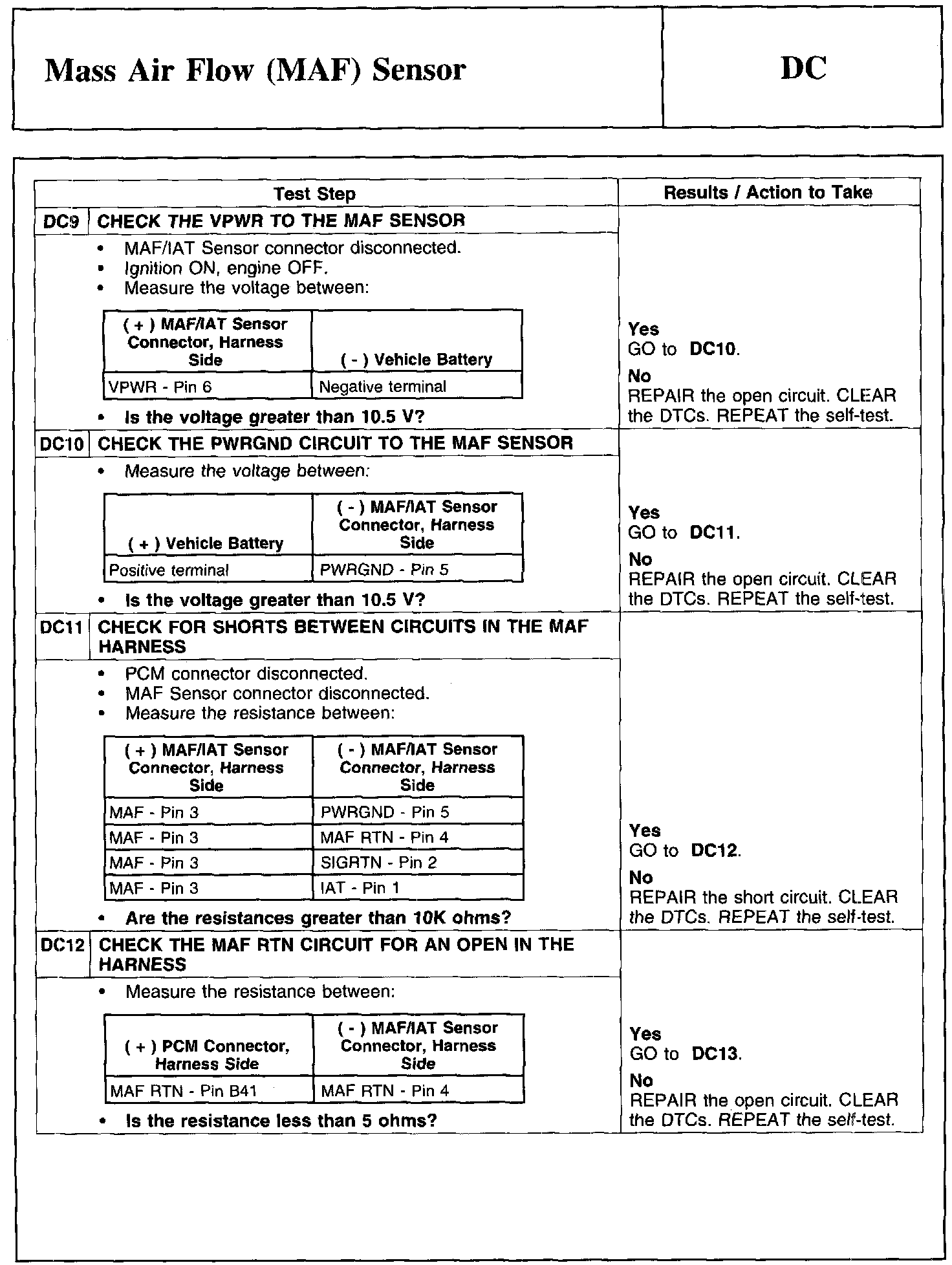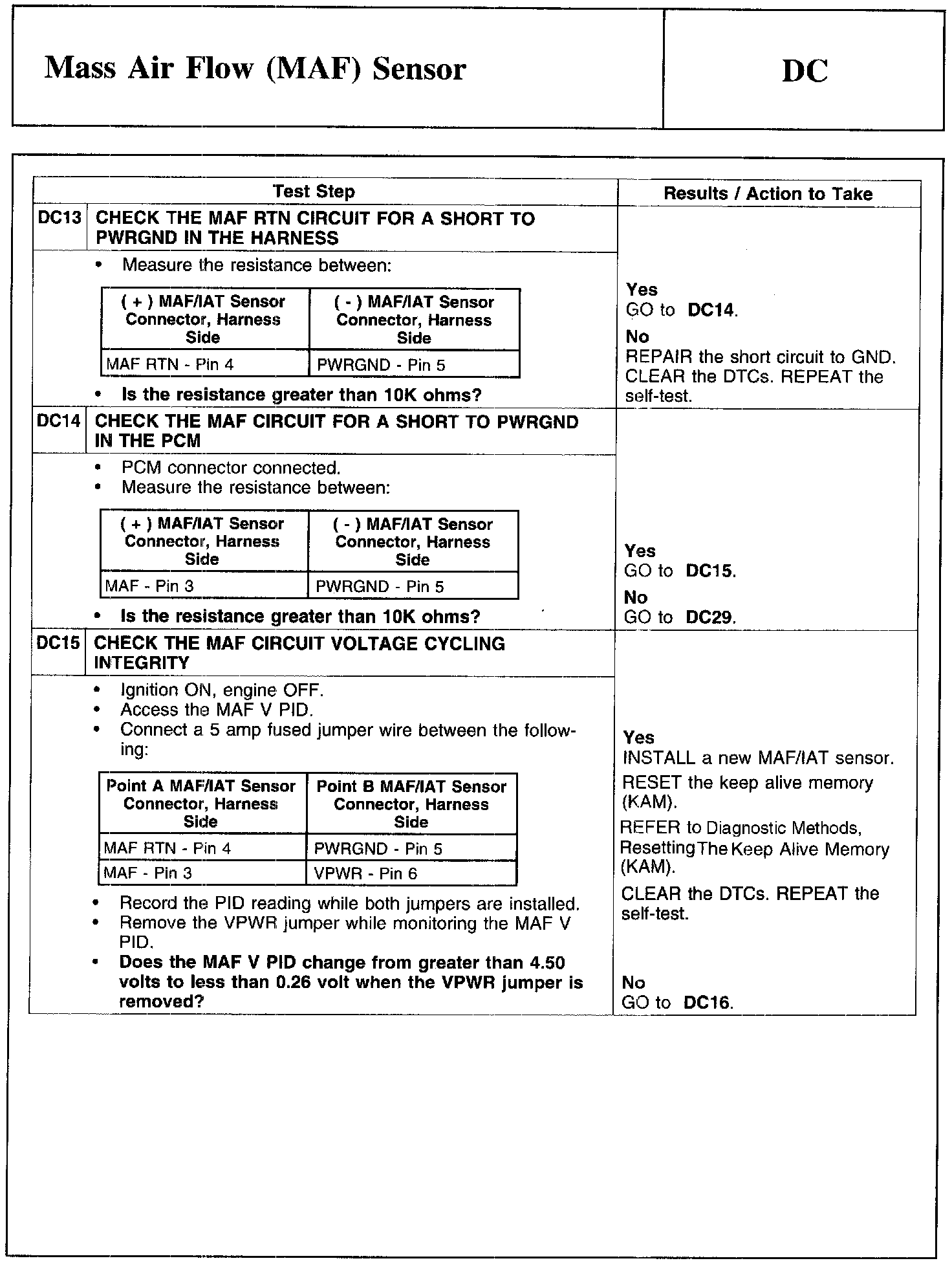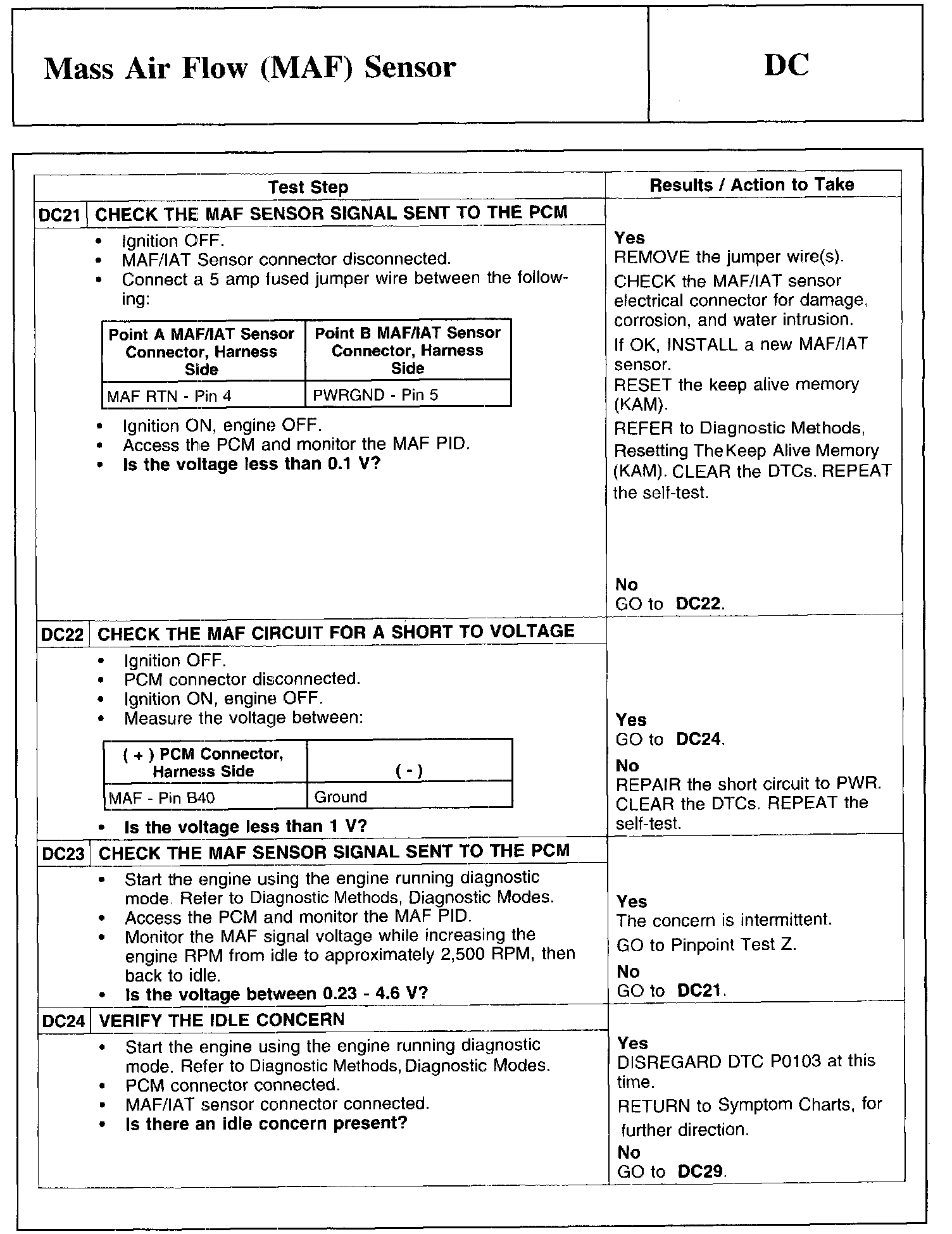 PINPOINT TEST DC: MASS AIR FLOW (MAF) SENSOR