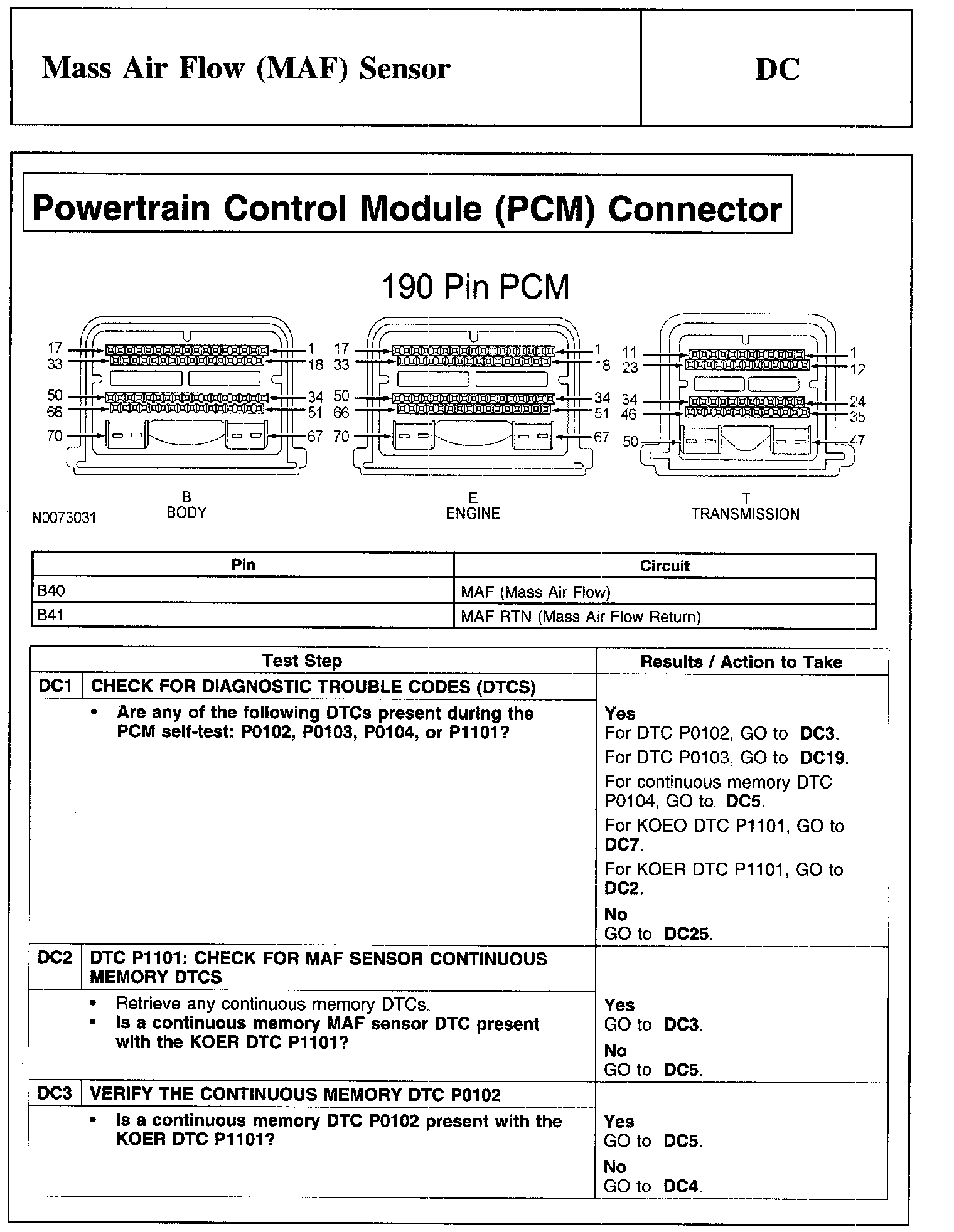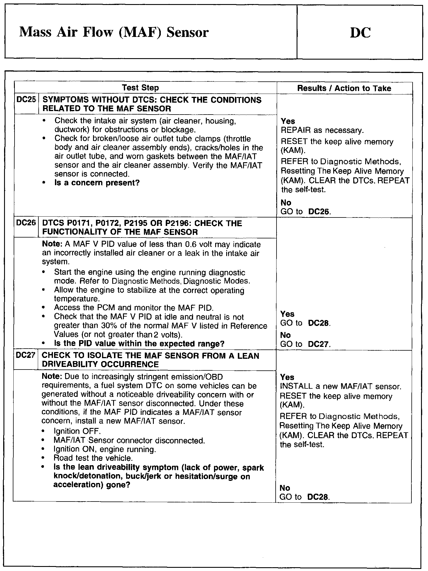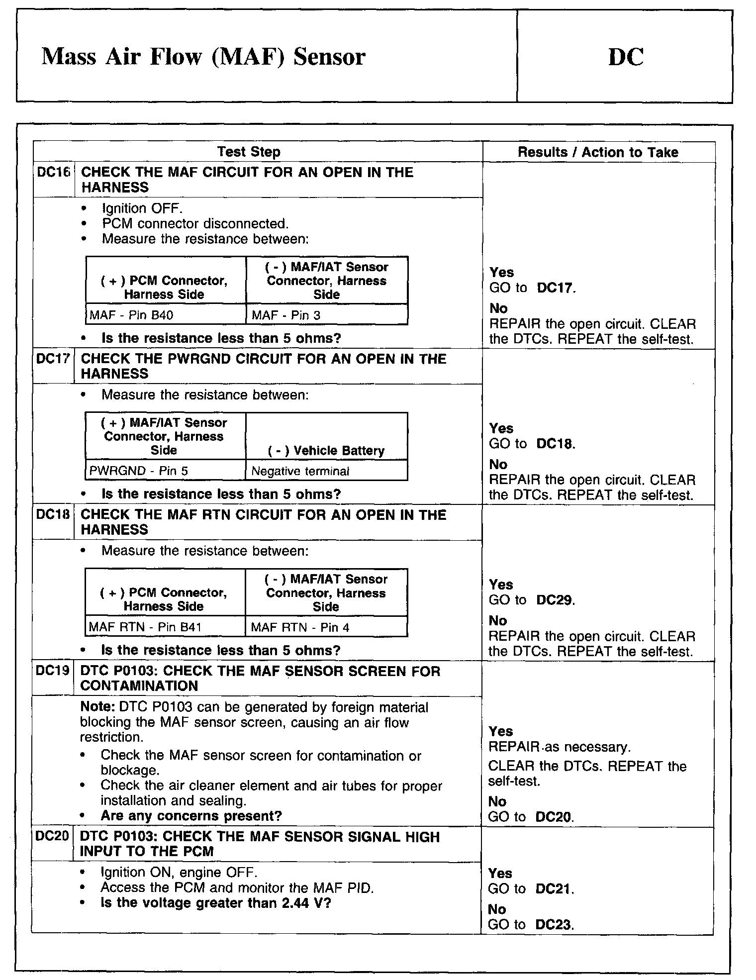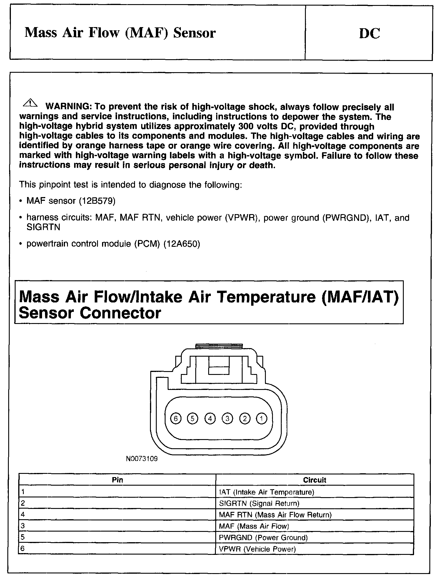 PINPOINT TEST DC: MASS AIR FLOW (MAF) SENSOR