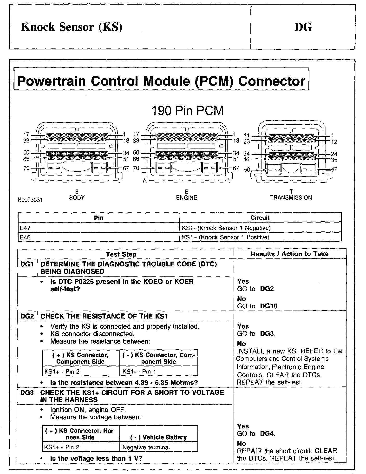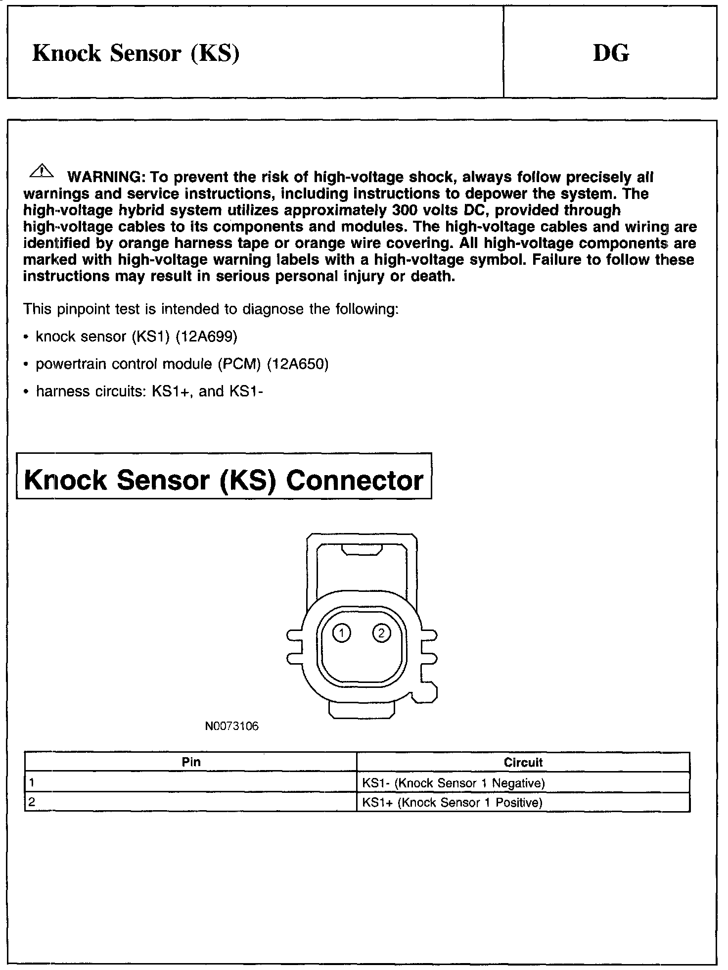 PINPOINT TEST DG: KNOCK SENSOR (KS)