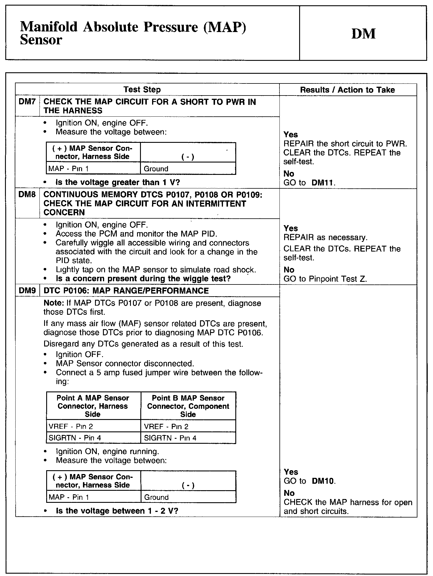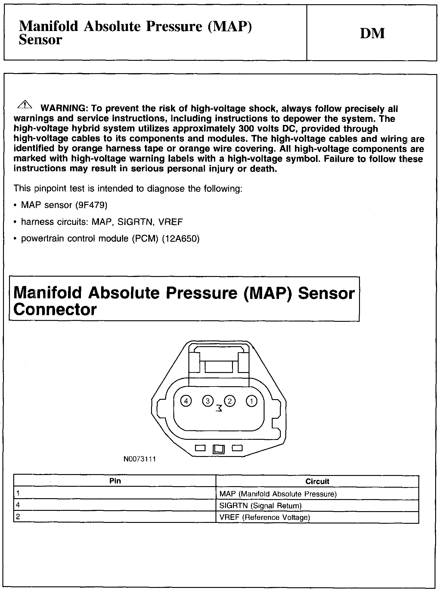 Test DM: Manifold Absolute Pressure (MAP) Sensor