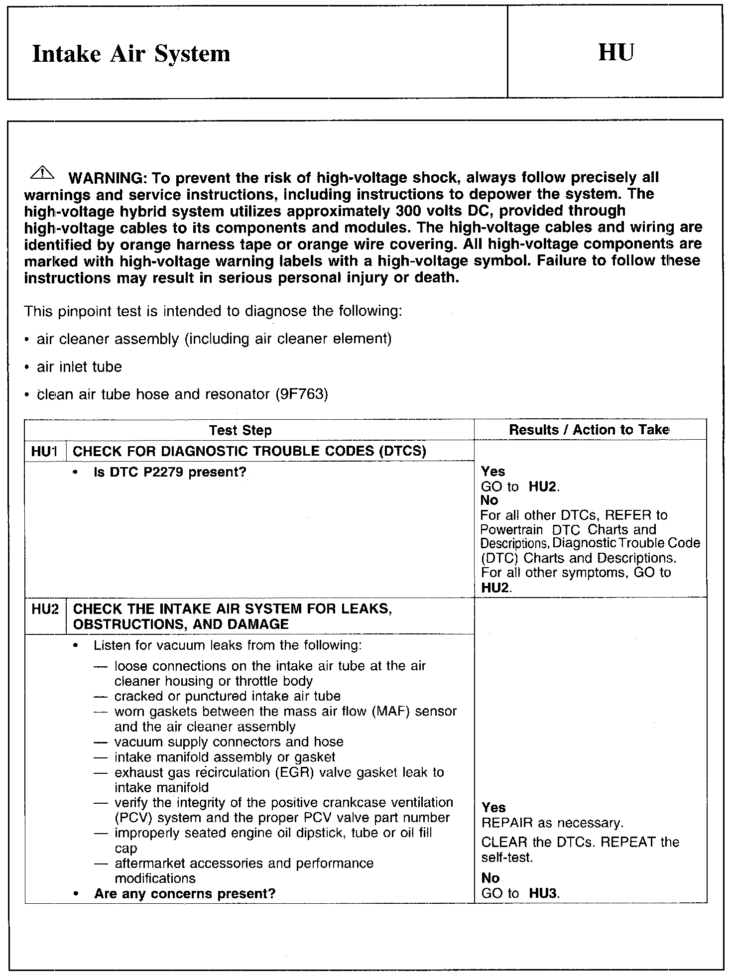 PINPOINT TEST HU: INTAKE AIR SYSTEM