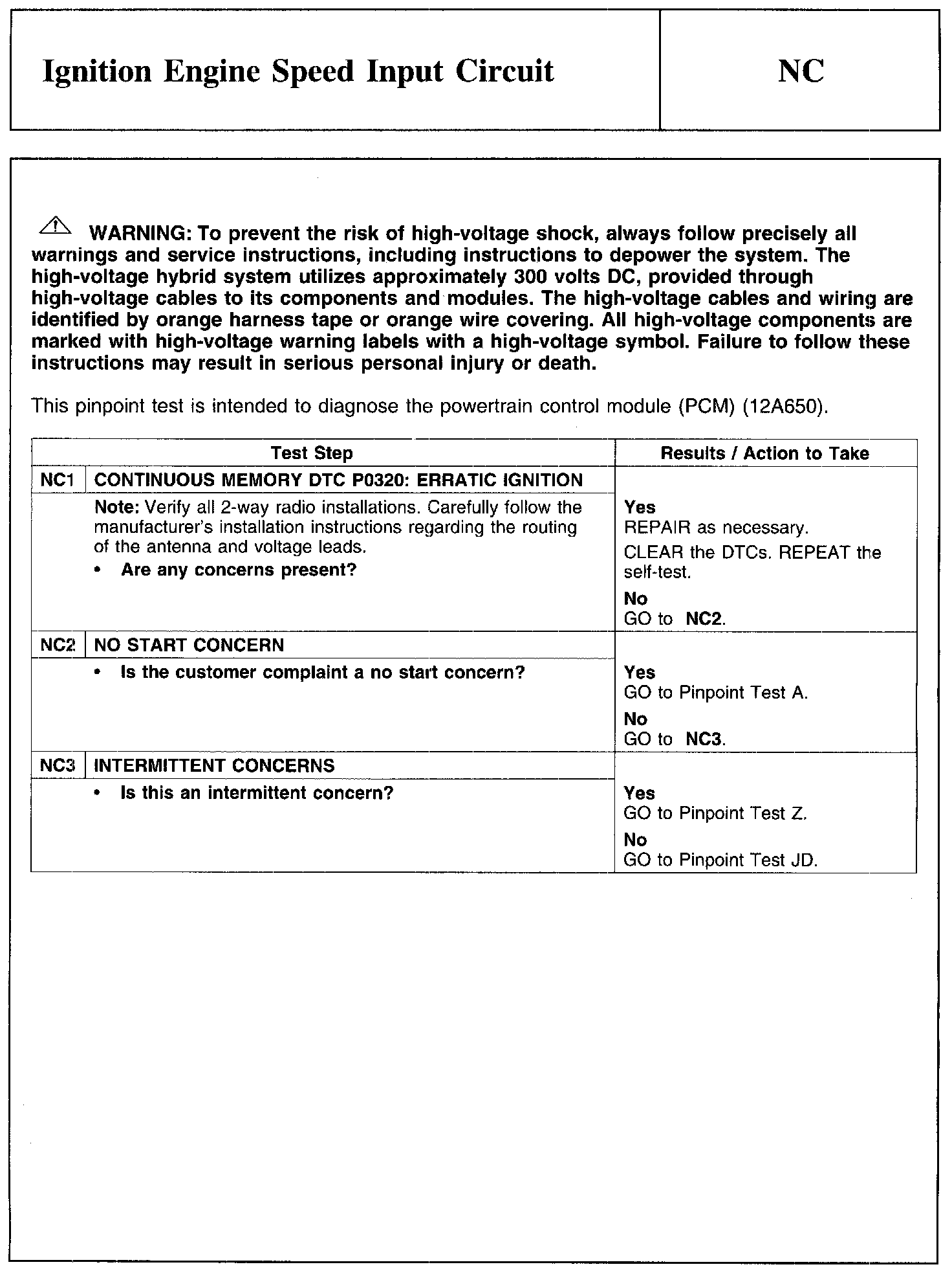 PINPOINT TEST NC: IGNITION ENGINE SPEED INPUT CIRCUIT