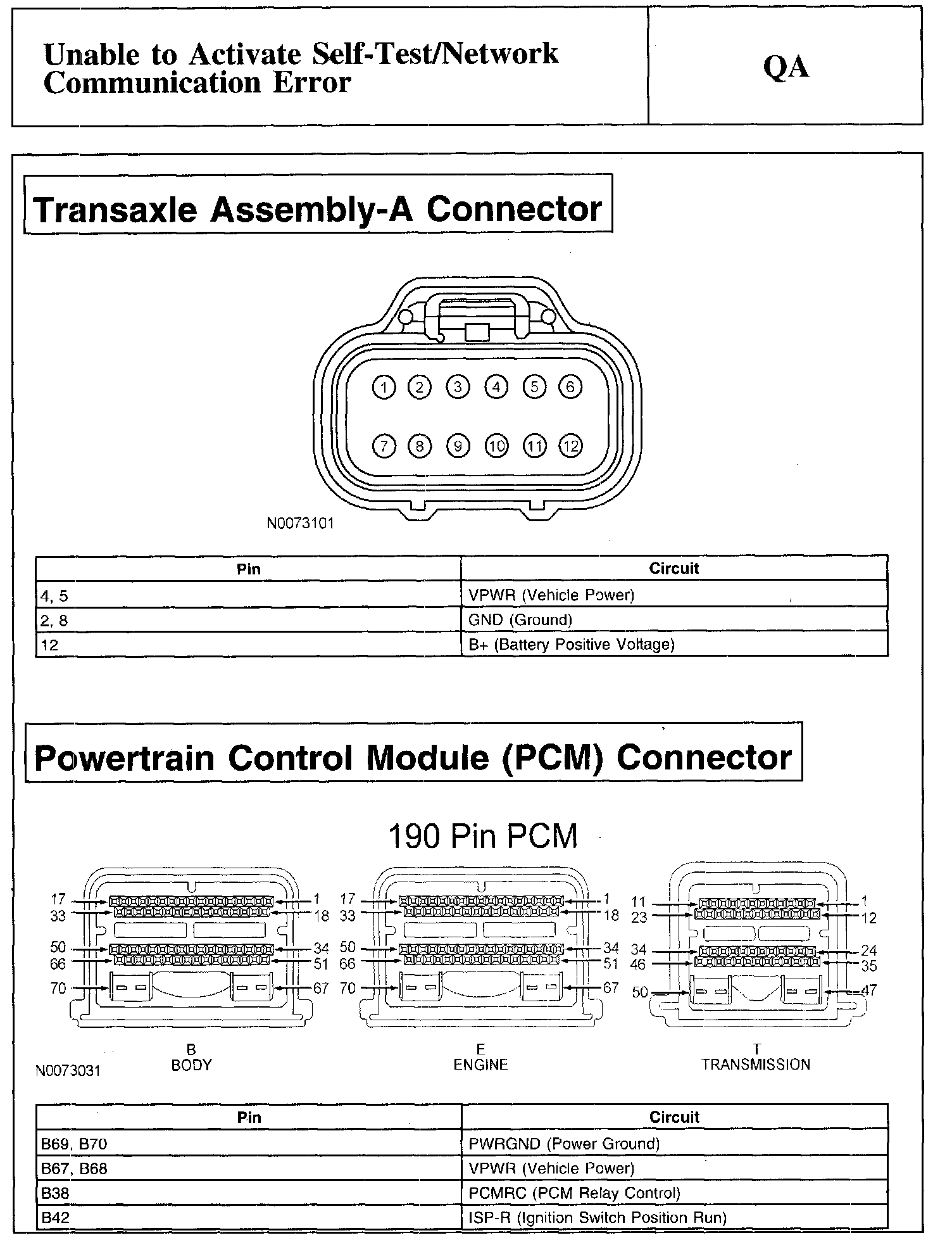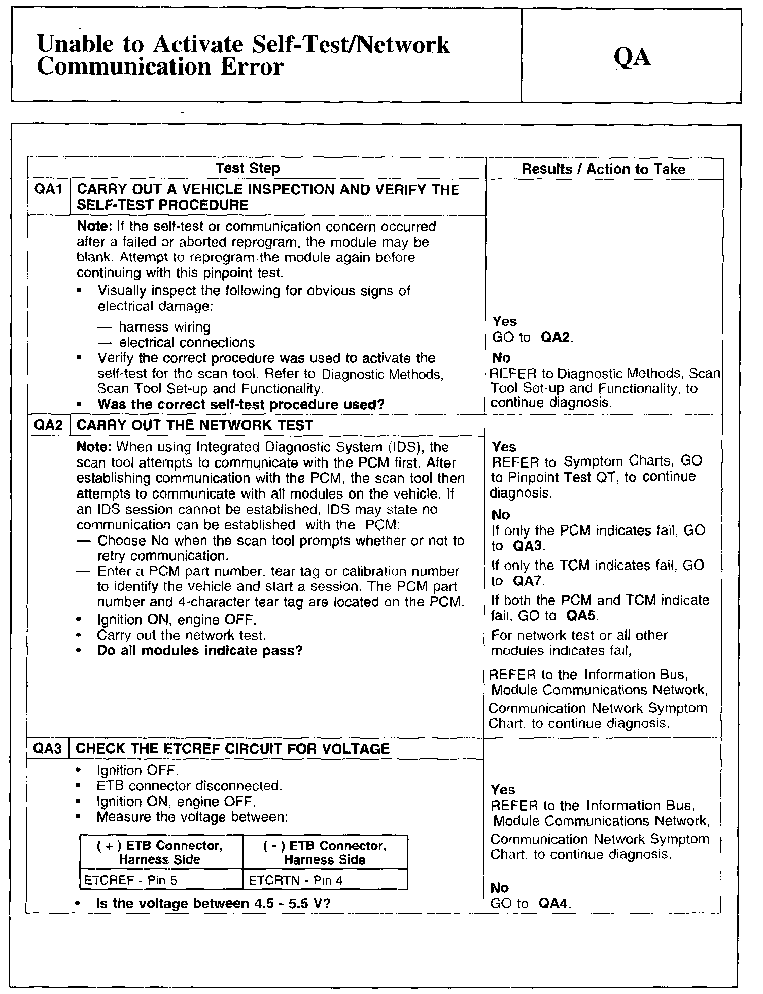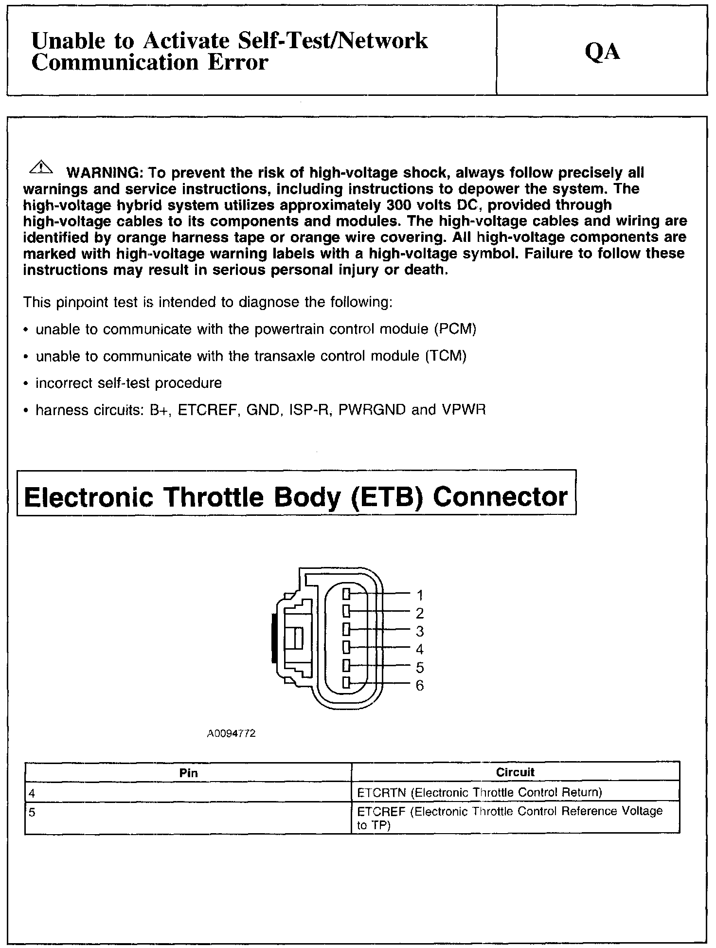 PINPOINT TEST QA: UNABLE TO ACTIVATE SELF-TEST/NETWORK COMMUNICATION ERRORWarning And Electronic Throttle Body (ETB) Connector: