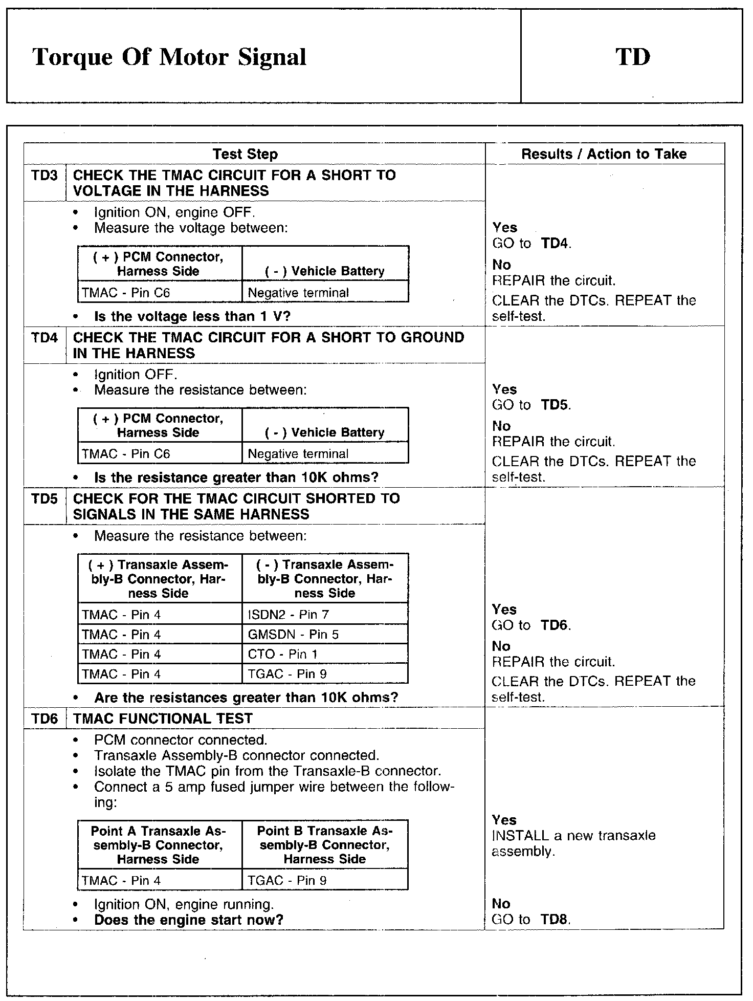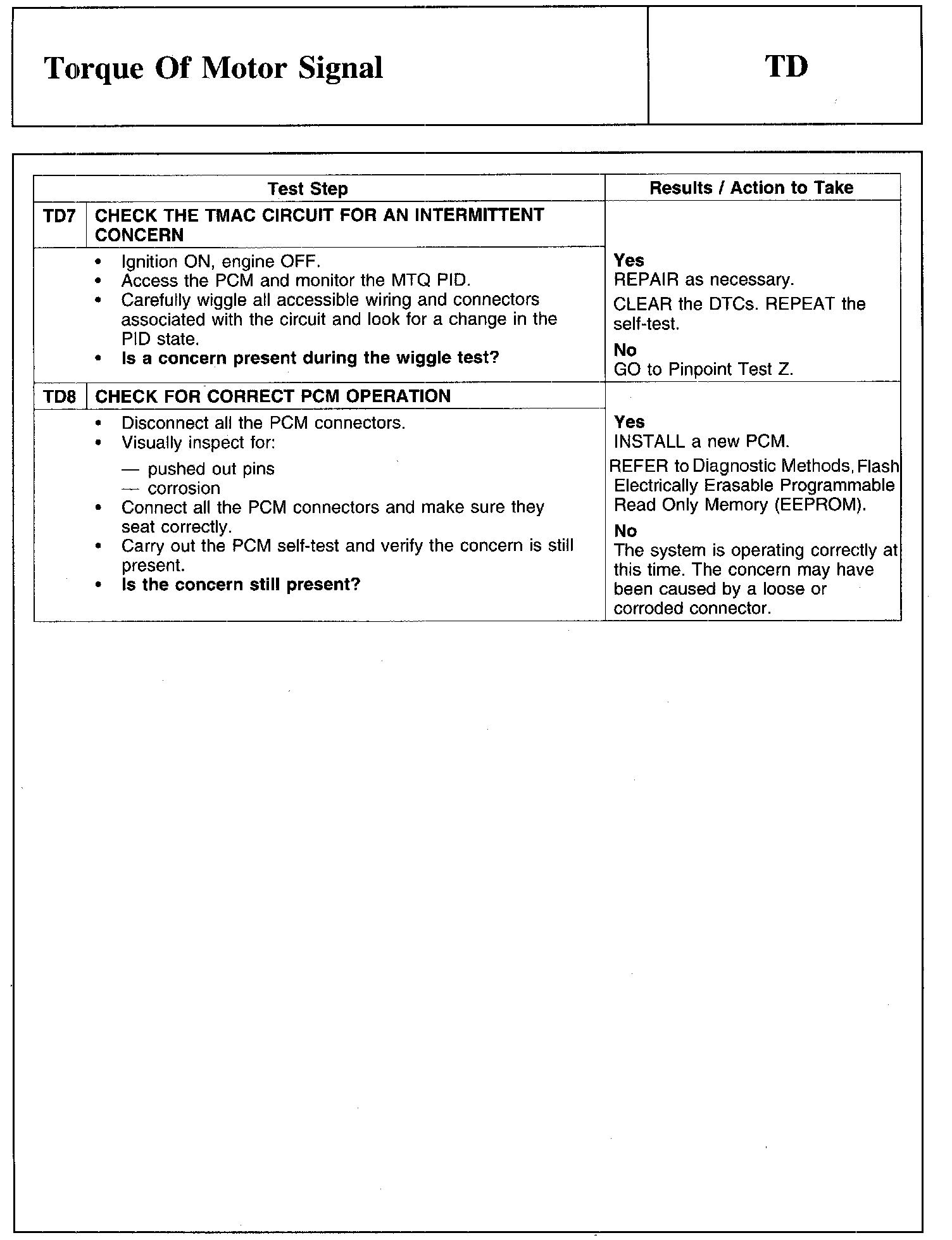 PINPOINT TEST TD: TORQUE OF MOTOR SIGNAL