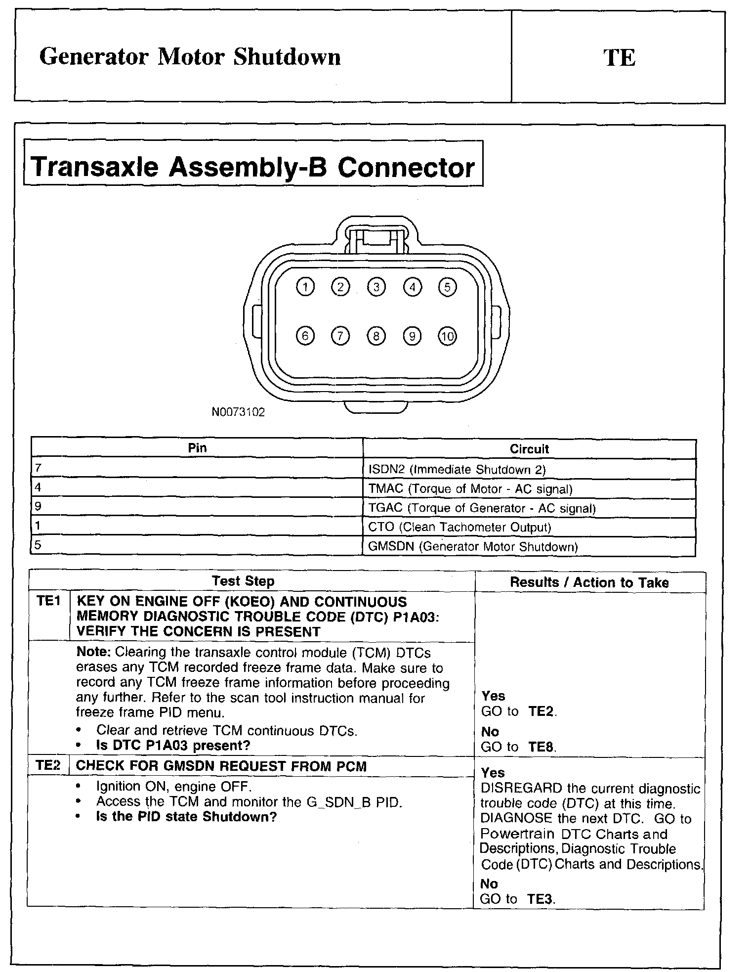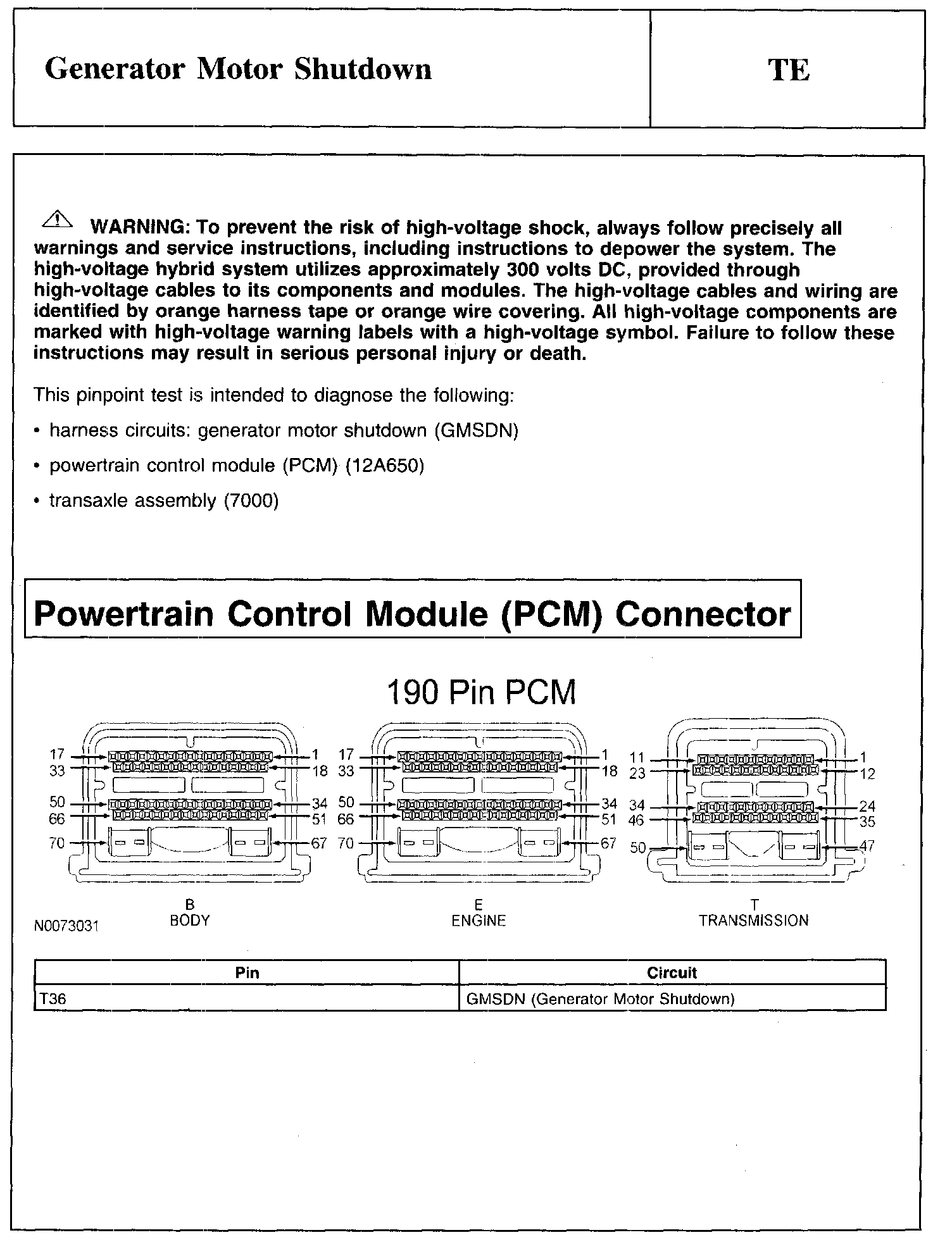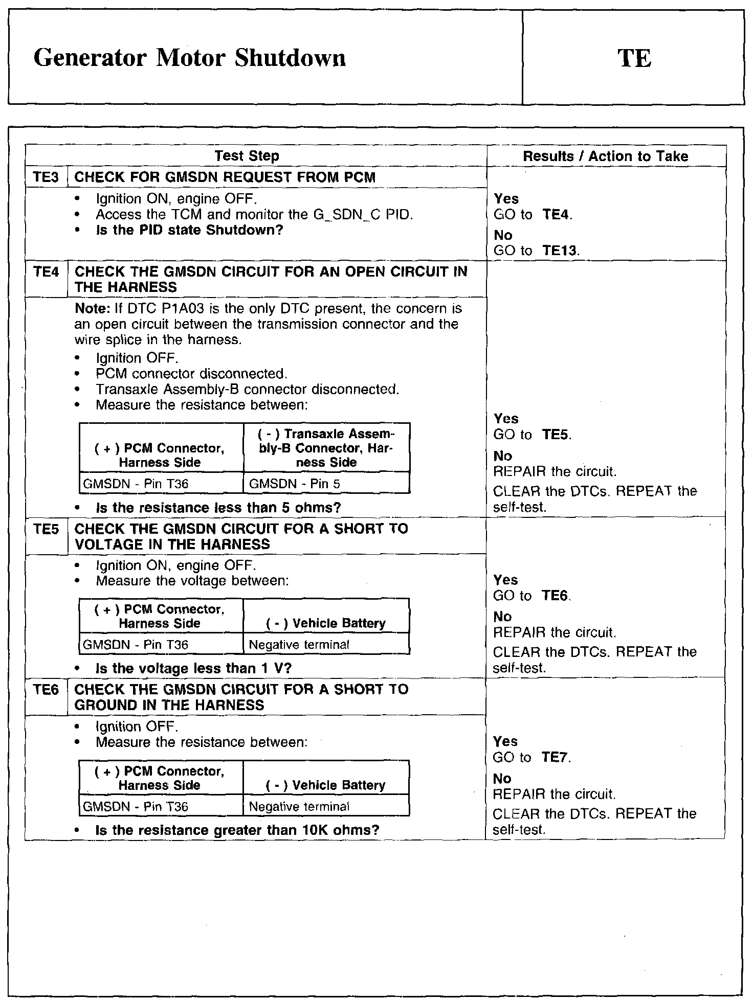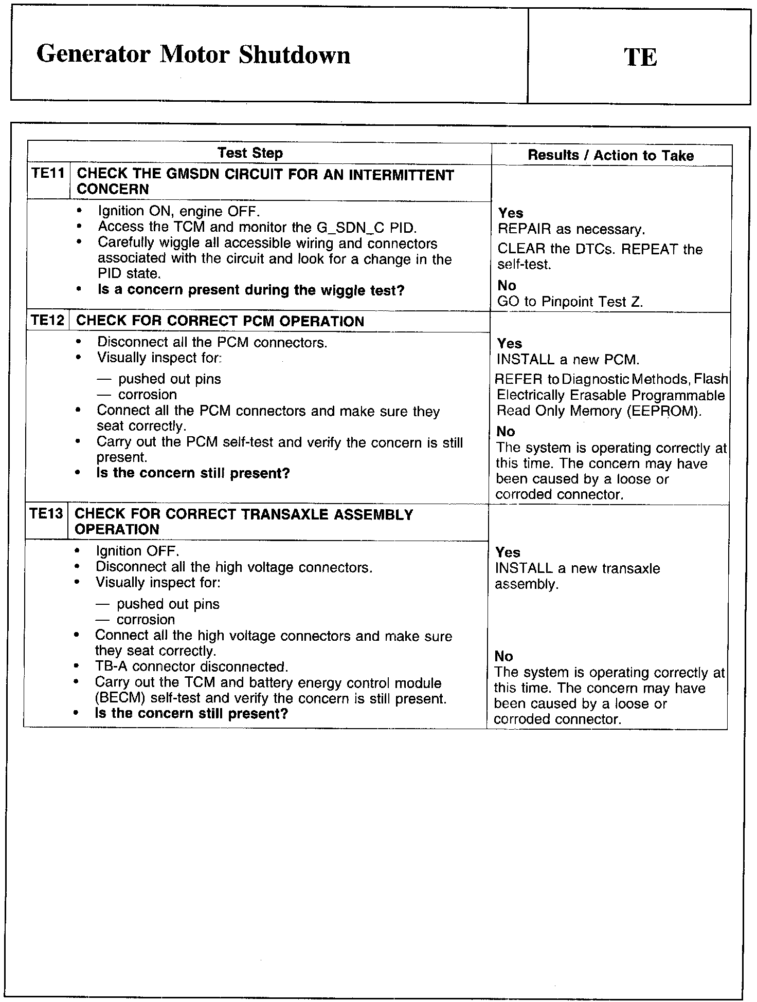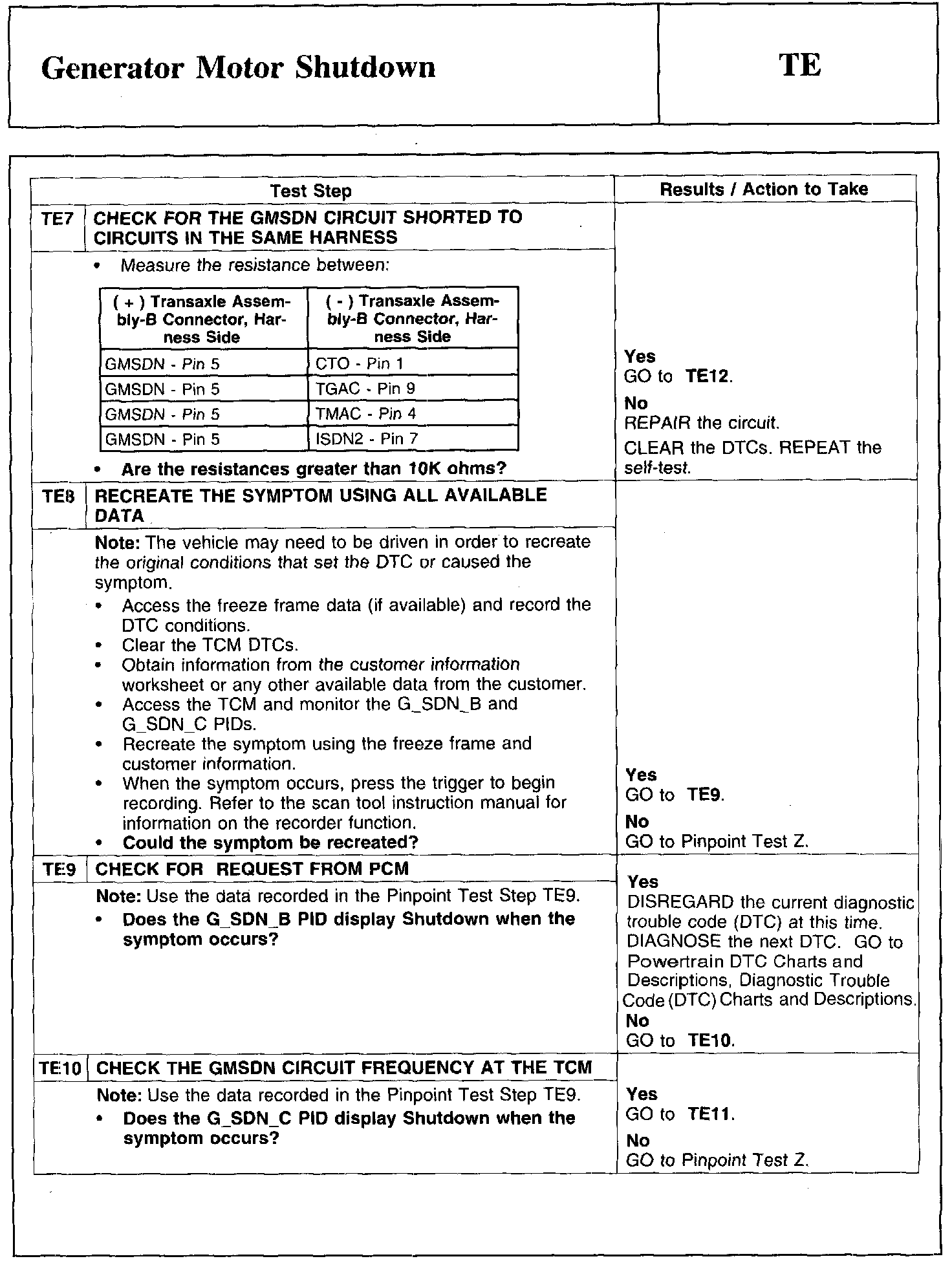 PINPOINT TEST TE: GENERATOR MOTOR SHUTDOWN