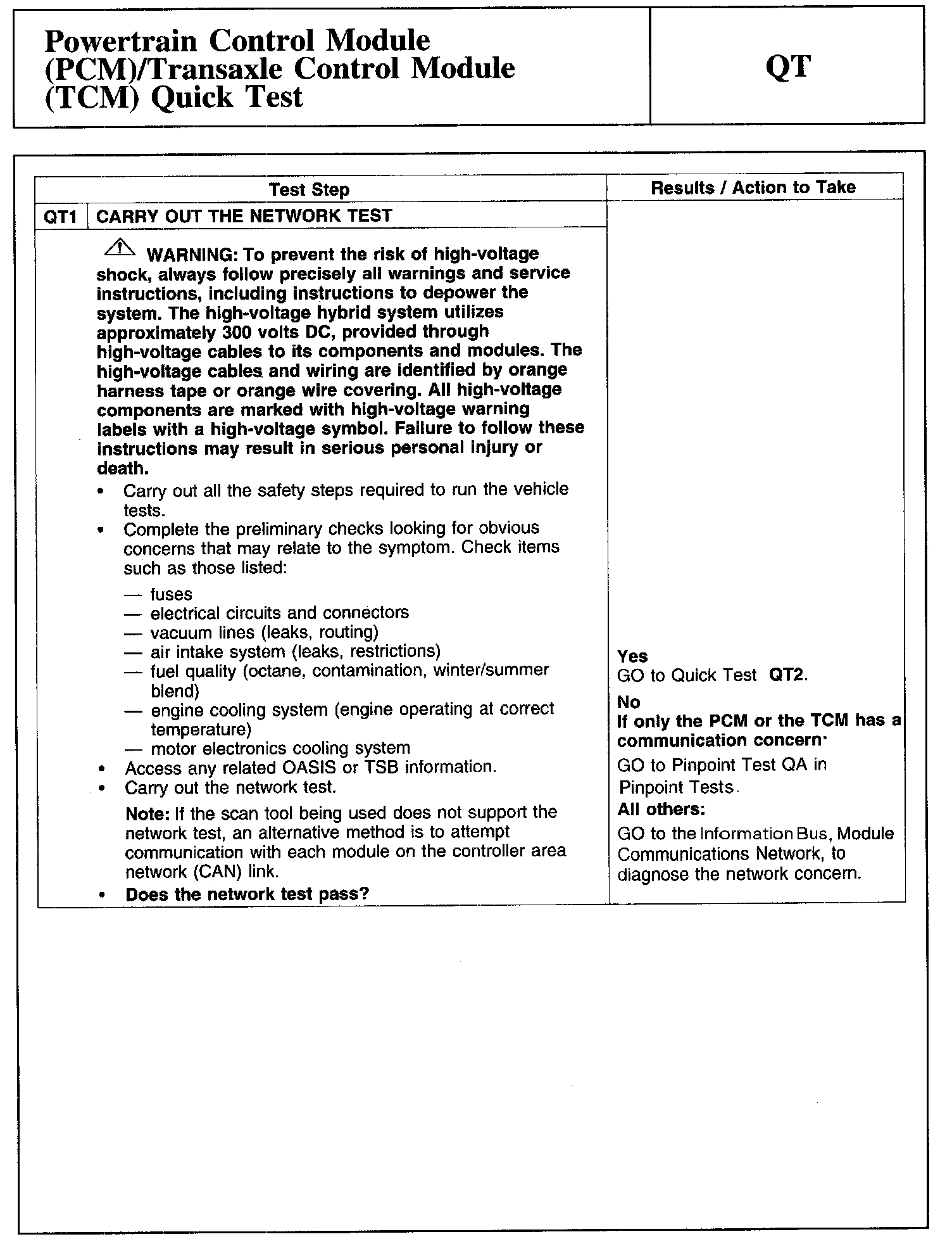 QT: Powertrain Control Module (PCM)/Transaxle Control Module (TCM) Quick Test
