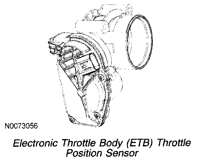 The ETB throttle position sensor has two signal circuits in the sensor for redundancy. The redundant ETB throttle position signals are required for increased monitoring. The first ETB throttle position sensor signal (TP1) has a negative slope (increasing angle, decreasing voltage) and the second signal (TP2) has a positive slope (increasing angle, increasing voltage). The two ETB throttle position sensor signals make sure the PCM receives a correct input even if one signal has a concern. There is one reference voltage circuit and one signal return circuit for the sensor. The reference voltage circuit and the signal return circuit is shared with the reference voltage circuits and signal return circuits used by the APP sensor. For additional information, refer to the description of the Torque-Based Electronic Throttle Control (ETC). Description and Operation