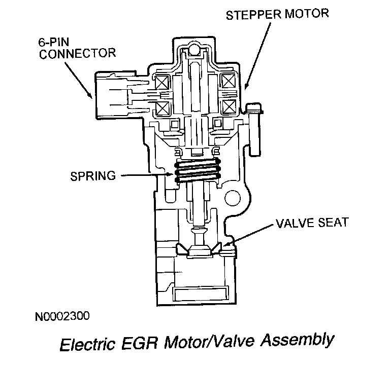 3. The PCM outputs signals to the EEGR motor to move (advance or retract) a calibrated number of discrete steps. The electric stepper motor directly actuates the EEGR valve independent of engine vacuum. The EEGR valve is commanded from a to 52 discrete steps to get the EGR valve from a fully closed to fully open position. The position of the EGR valve determines the EGR flow.