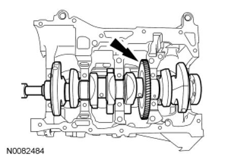 NOTE: Position the crankshaft to the rear of the cylinder block, then position the crankshaft to the front of the cylinder block before tightening the main bearing beam bolts.