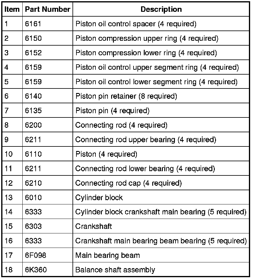 NOTE: Assembly of the engine requires various inspections/measurements of the engine components (engine block, crankshaft, connecting rods, pistons and piston rings). These inspections/measurements will aid in determining if the engine components will require replacement. For additional information, refer to Engine.