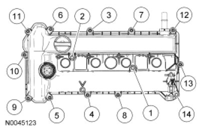 - Tighten the bolts in the sequence shown to 10 Nm (89 lb-in).