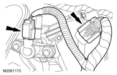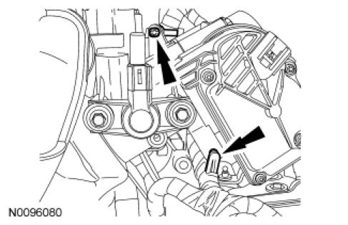 121. Connect the Heated Oxygen Sensor (HO2S) electrical connector and attach the 2 wiring harness retainers to the generator stud bolts.