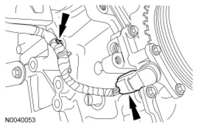 122. Connect the CKP sensor electrical connector and attach the wiring harness pin-type retainer.