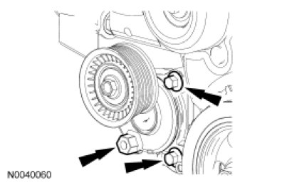 133. Using the hex feature, rotate the accessory drive belt tensioner clockwise and install the accessory drive belt onto the coolant pump pulley.