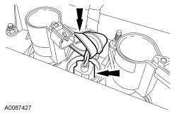 Squeeze the 2 crankcase vent oil separator tube tabs and disconnect the tube from the intake manifold.